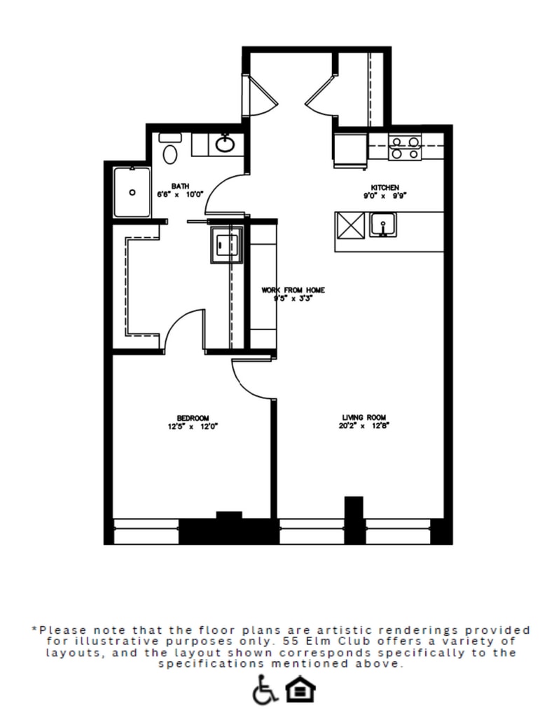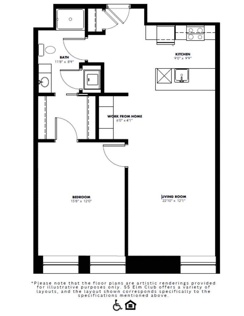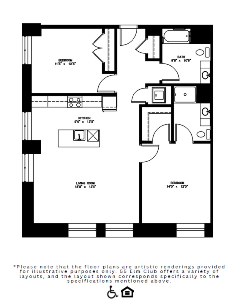The 55 Elm Club offers 1 to 2 Bedroom apartments starting from $1,830 and having 484–1,490 sq ft. Here is the current pricing and availability: