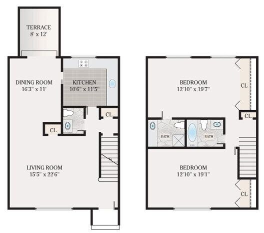 2 Bed 2 Bath - Floorplan 1 2 Bed 2 Bath Townhome