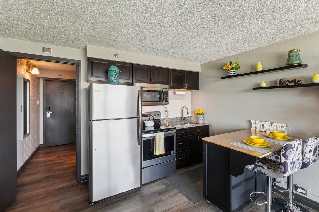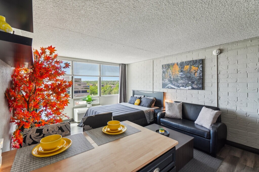 The 609 Studios is a newly renovated Tower with Skyrise views. Tower units are studio apartments with high-end finishes and are available unfurnished and fully furnished. We have added Brand New One Bedrooms with 13 foot ceilings! Situated just 2 blocks from downtown Greeley, the location is superb for breweries, dining, and downtown events.