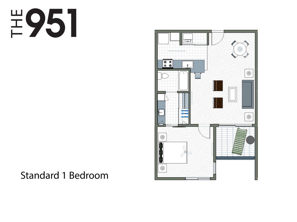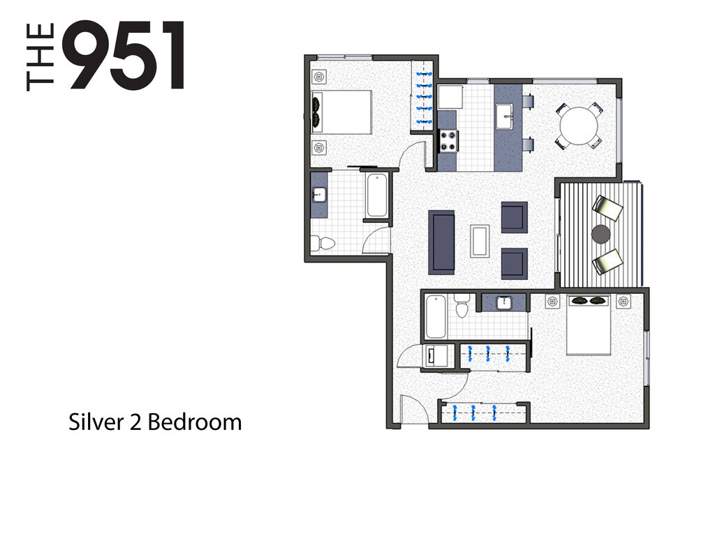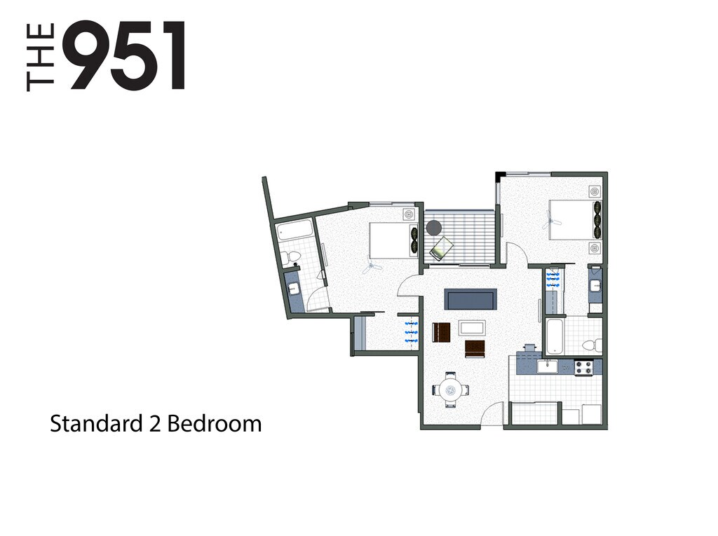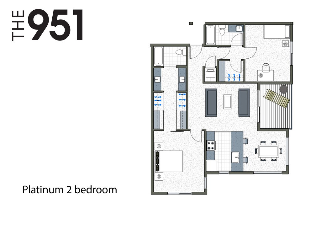 Thrive in your sophisticated urban lifestyle at The 951 Apartments. Our excellence is proof of our discernment in detailed design flow, high-valued premier location, and genuine relationships with our residents. Love where you live Our unrivaled leading location —paramount and priceless to your lifestyle— is between the edge of downtown and nature, granting a variety of beautiful views from the timeless Boise Foothills, Table Rock, Boise River, and downtown, as well as easy access to destinations whether by foot or drive. Find stability at The 951 Apartments’ convenience of the big city and the comforts of small town living. We are ideally located next to the greenbelt, surrounded by parks, and just minutes away from shopping, entertainment, airport, and freeway access. Find high-quality trendy restaurants, a valuable 24-hr grocery nearby, and on-site retail on The 951’s live / work spaces. Attending a football game on the famous blue turf at Idaho’s prized Boise State Bronco Stadium is a block away. Whatever your preference, The 951 is optimally located to improve your mood of city dwelling and accommodate your personal and professional lifestyle. Love your building and space Here at The 951 we bring together contemporary design and quiet living with style and elegance, along with secure entry systems to contribute to a higher standard of living. Sleek architectural details and high-end finishes set the tone, from the elevator access to elegant hallways leading to our wide selection of floorplans, some including 10’ and 12’ ceilings, master suite with dual vanities, polished concrete floors, private spacious decks, or ground floor garden patios to unwind. Each residence features granite countertops throughout, equipped with Energy Star appliances, washer and dryer, split air heating and cooling conditioning units in each room, along with window shades and ceiling fans for the perfect ambiance, and sizeable master bedroom and bathroom with custom oversized walk-in closets. Extreme privacy is The 951 Apartments most prized hallmark. Whether between apartments or within the apartment, no 2 bedrooms share the same wall. All bathrooms are en-suite. Every corner designed and utilized for maximum living space and storage. Additional residential benefits include onsite dedicated management, parking, bike storage, fitness center, extra storage, and covered parking spaces available. Ready to thrive? This is just a glimpse of what we have to offer so contact us and be part of The 951 community.
