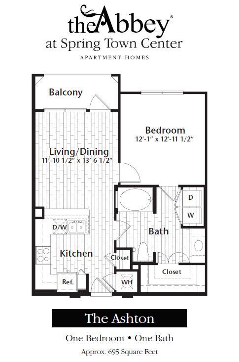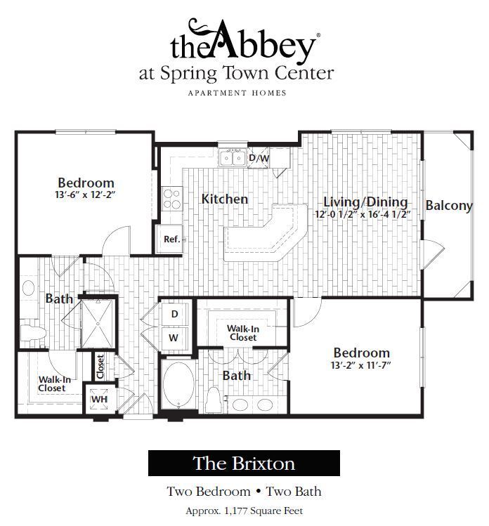 The Abbey At Spring Town Center offers 1 to 3 Bedroom apartments starting from $1,149 and having 695–1,607 sq ft. Here is the current pricing and availability: