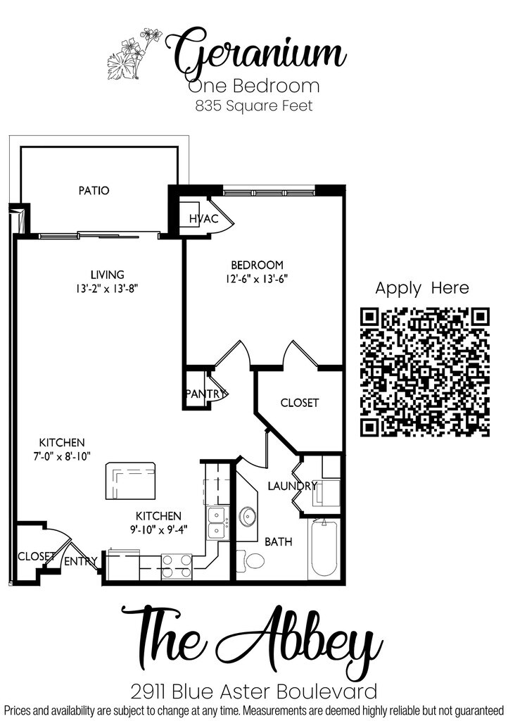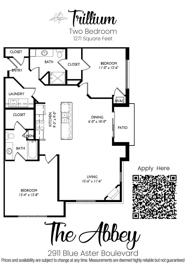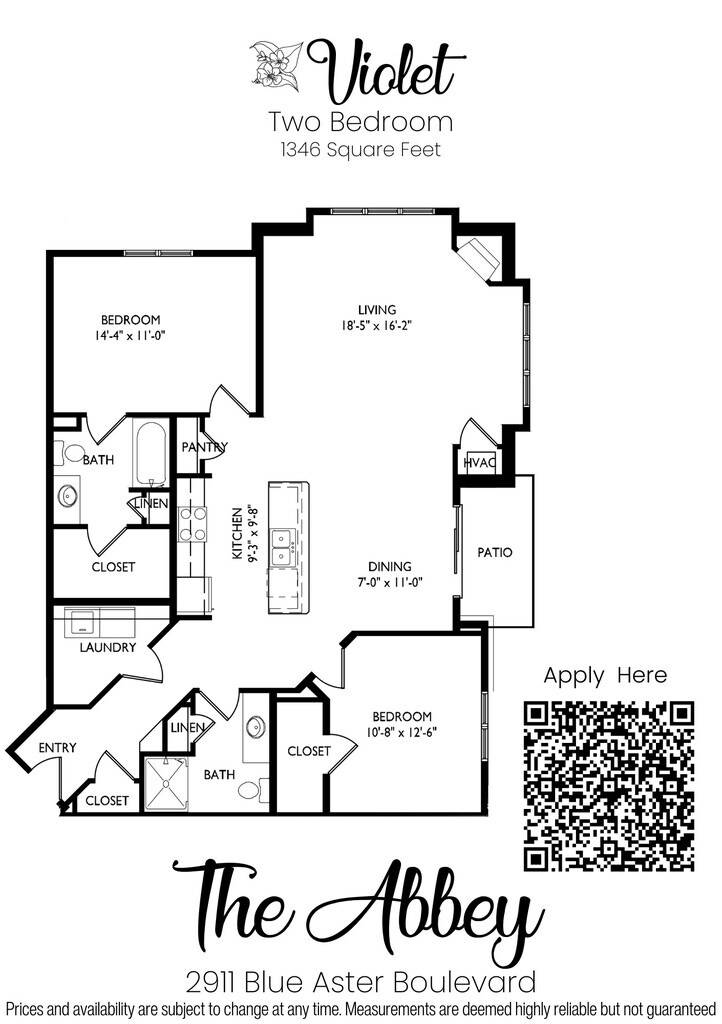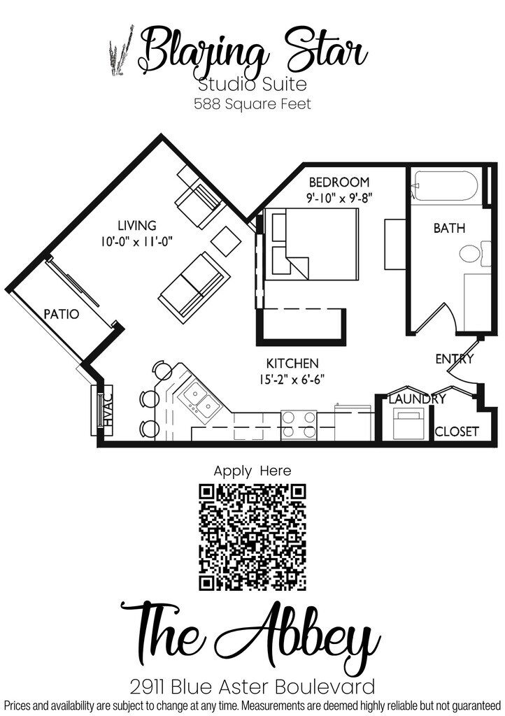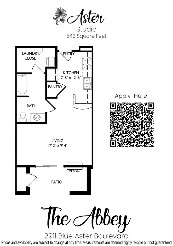 The Abbey offers Studio to 2 Bedroom apartments starting from $1,269 and having 543–1,346 sq ft. Here is the current pricing and availability: