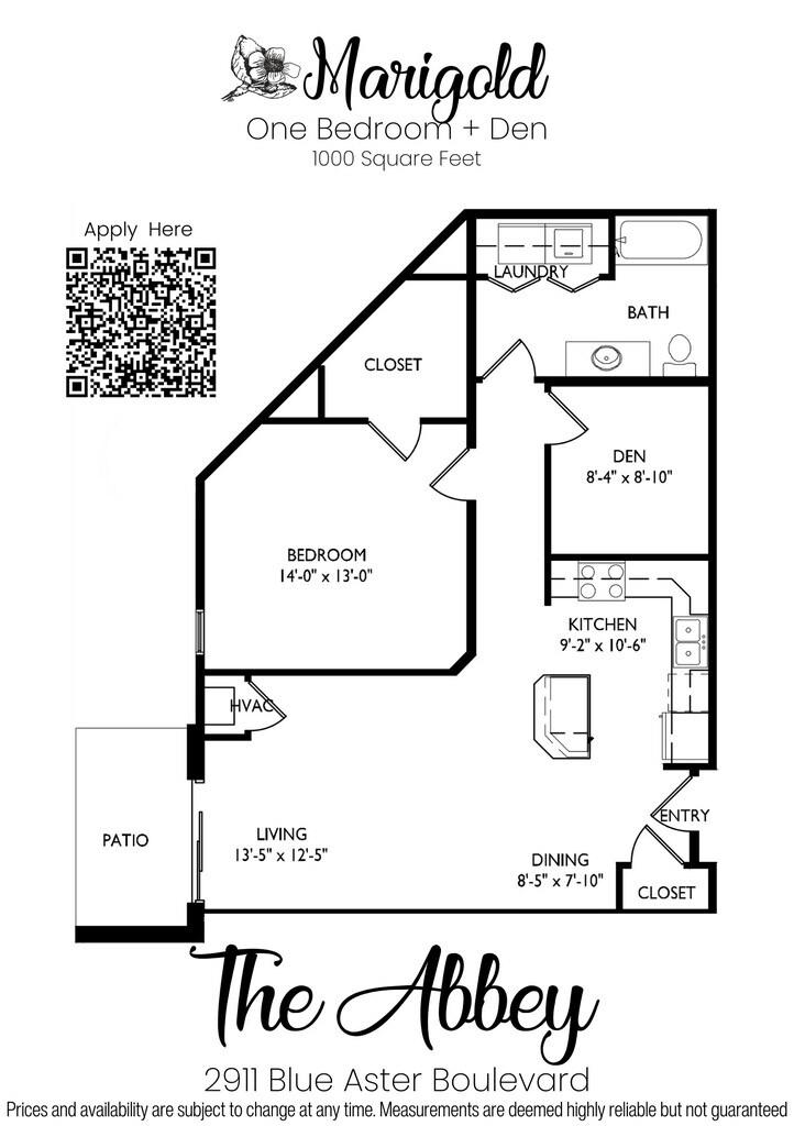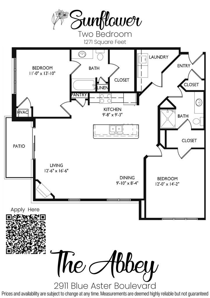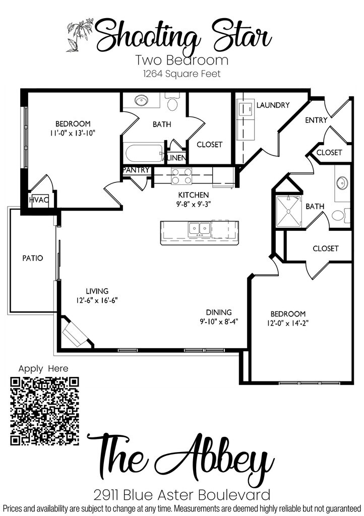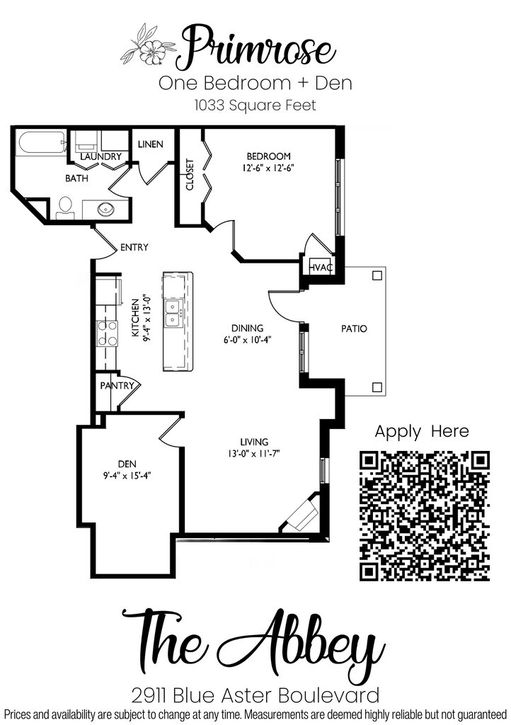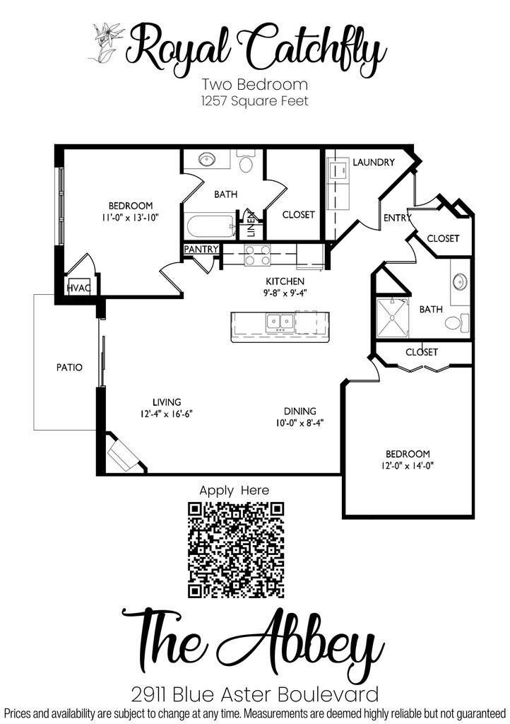 The Abbey offers Studio to 2 Bedroom apartments starting from $1,269 and having 543–1,346 sq ft. Here is the current pricing and availability: