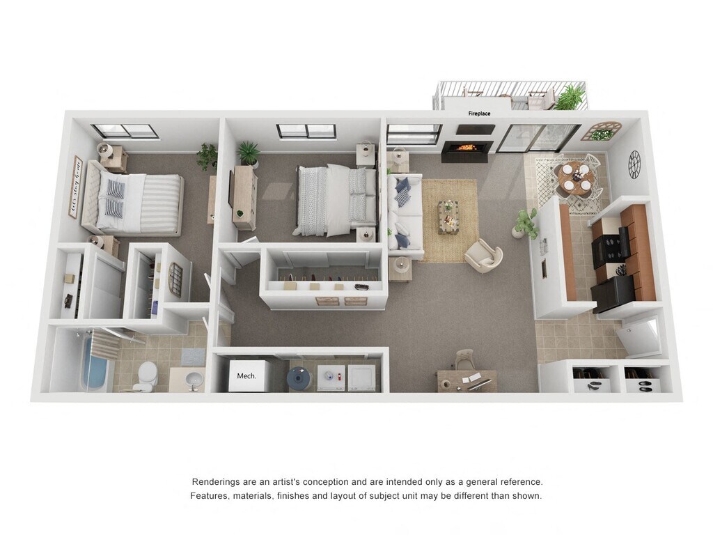 2 Beds, 1.5 Baths, 1170 sq ftAvailable NowLargest 2 BedroomThis is the largest 2 Bedroom at this PropertyModel Gallery