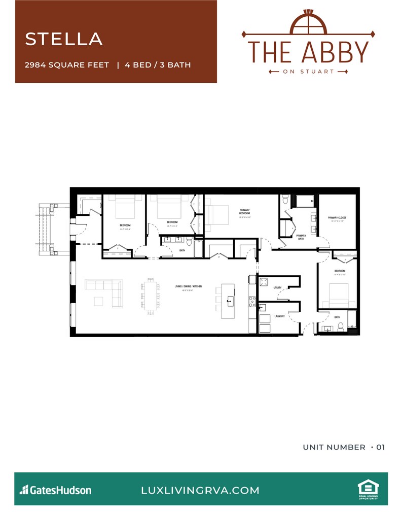 Apartment Model: # 01$5,2224 Bedroom, 3 Bath, 2984 sq ftAvailable Now# 01 - Floorplan 1 Apartment Unit: 01Apartment Model: # 01$5,2224 Bedroom, 3 Bath, 2984 sq ftAvailable Now# 30