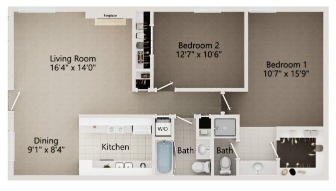 Apartment Model: 2 Bed 2 BathFrom $1,0652 Bedroom, 2 Bath, 1075 sq ftAvailable Now![]()
