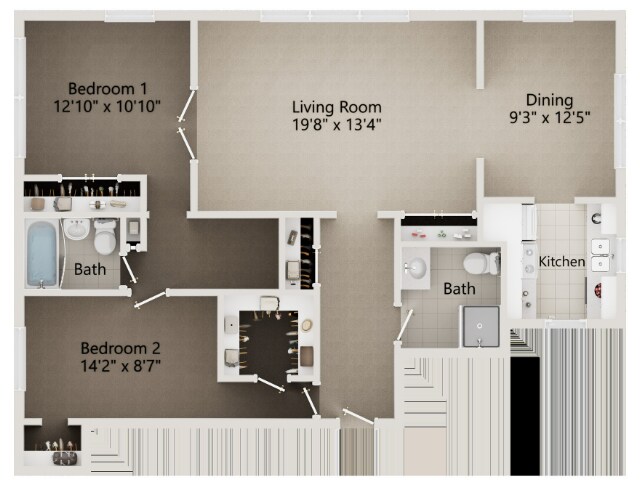 2 Bed 2 Bath - Floorplan 1 ![]()