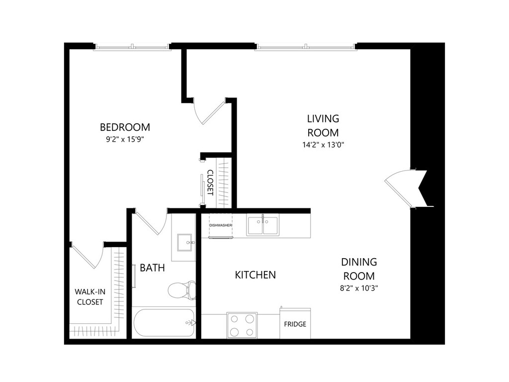 1 Bed, 1 Bath, 640-649 sq ftAvailable NowLargest 1 BedroomThis is the largest 1 Bedroom at this PropertyAvailability Details