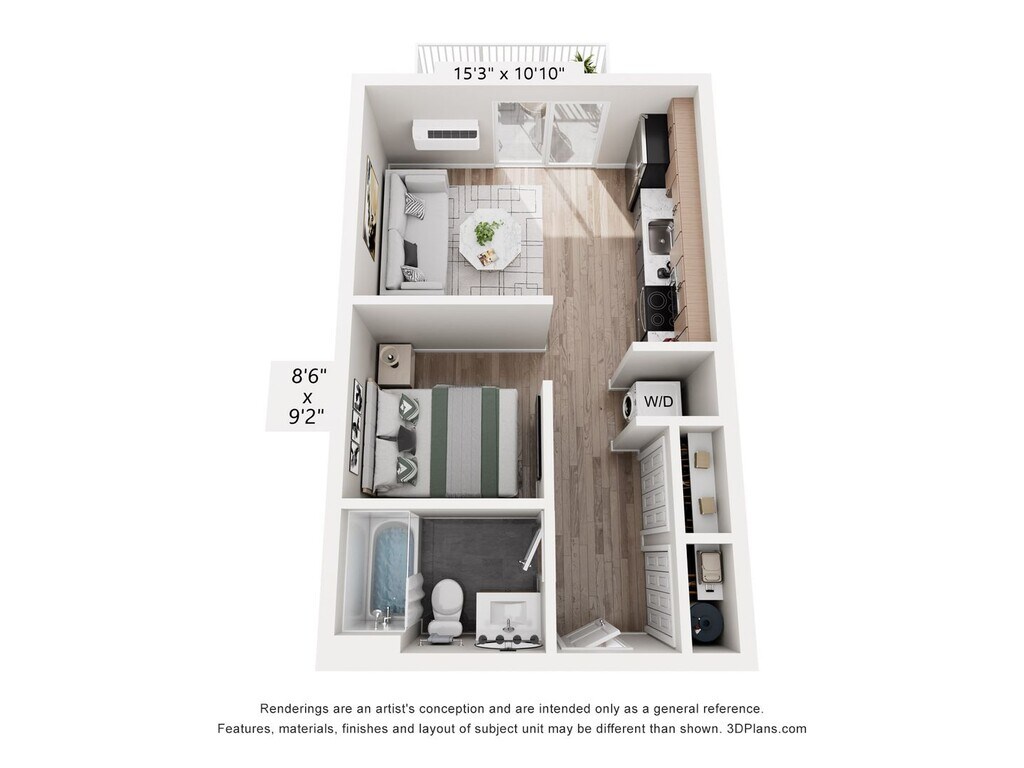 Studio, 1 Bath, 486 sq ftPlus FeesAvailable February 1, 2026Largest StudioThis is the largest Studio at this PropertyModel Gallery