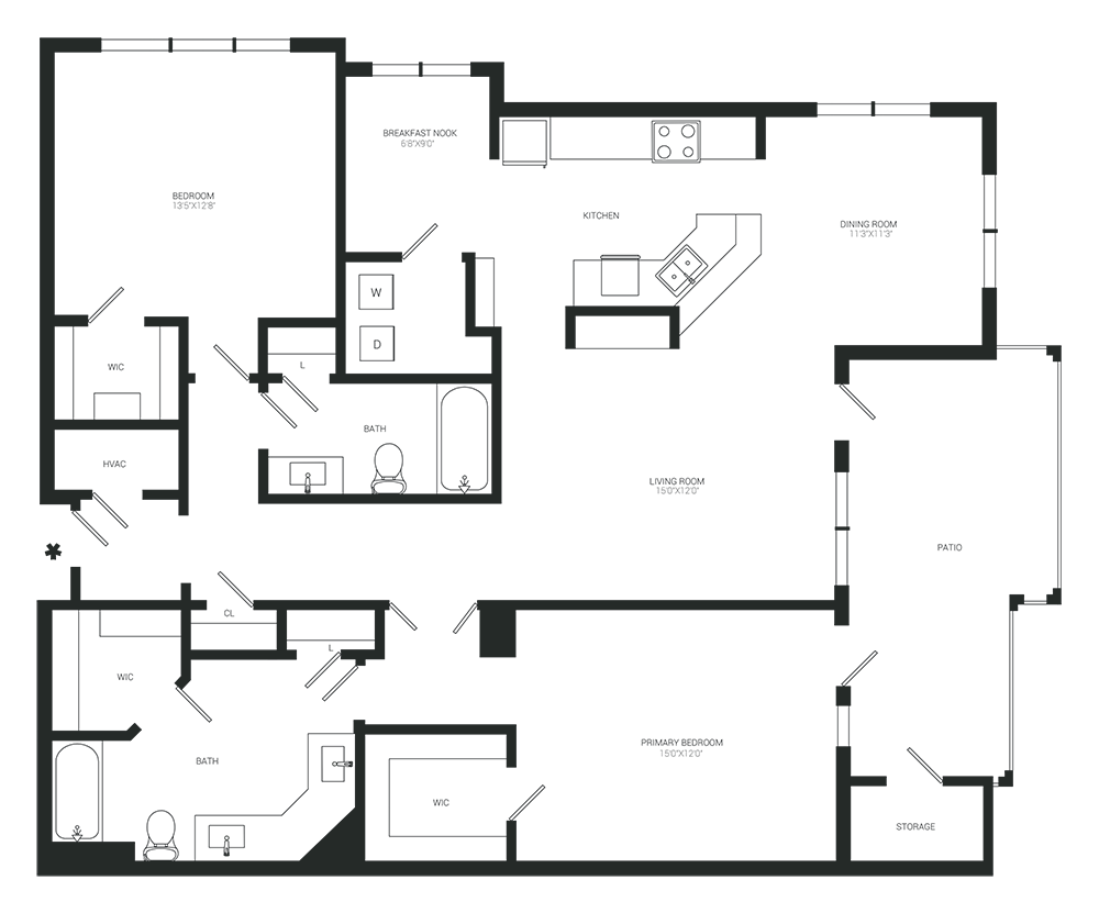 Apartment Model: The Dogwood2 Bedroom, 2 Bath, 1350 sq ftAvailable NowFloor plans are artist's rendering. All dimensions are approximate. Actual product and specifications may vary in dimension or detail. Not all features are available in every rental home. Please see a representative for details.