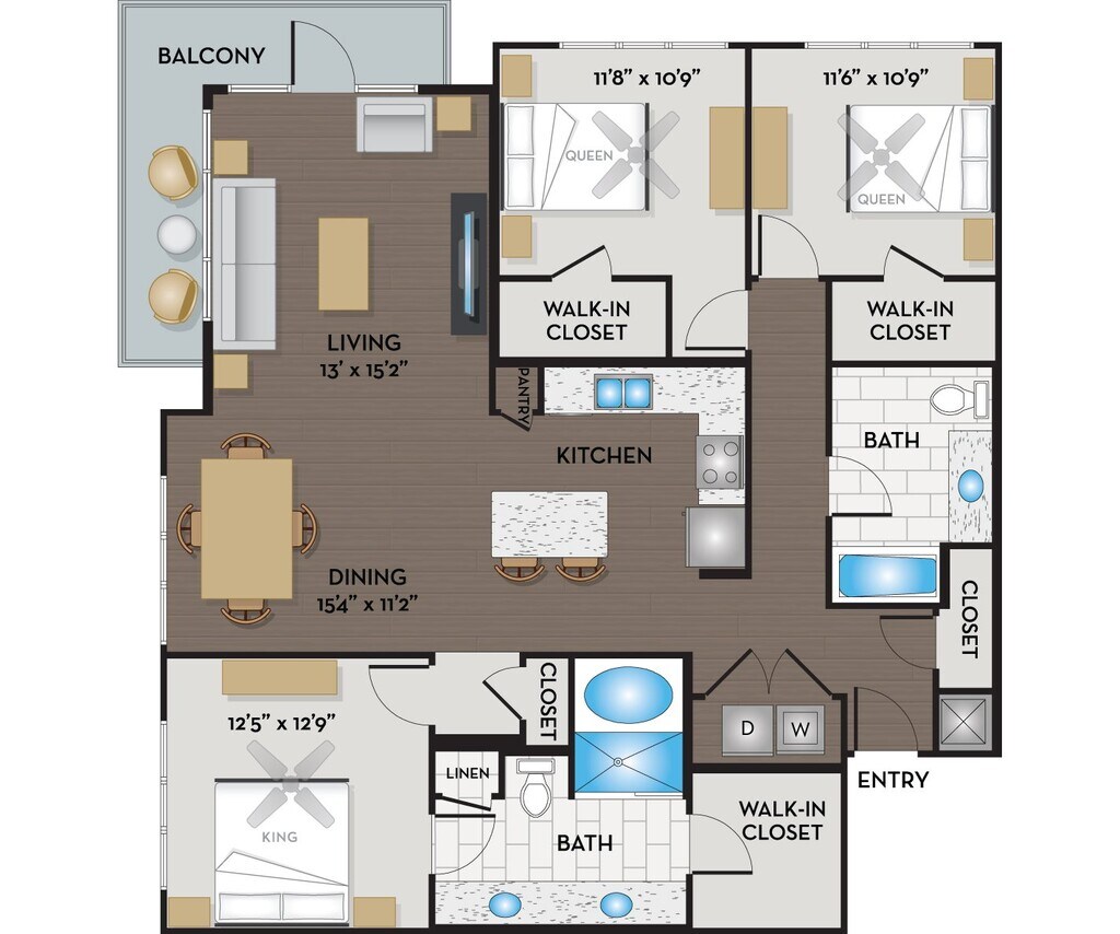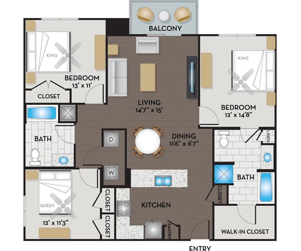 Apartment Model: 11F3From $1,2951 Bedroom, 1 Bath, 797-852 sq ftAvailable Now![]()