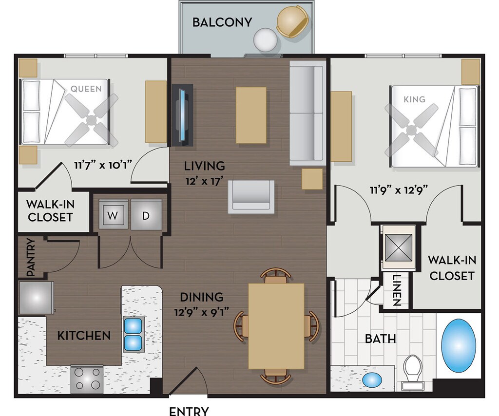 Apartment Model: 11F2From $1,3551 Bedroom, 1 Bath, 642 sq ftAvailable Now![]()