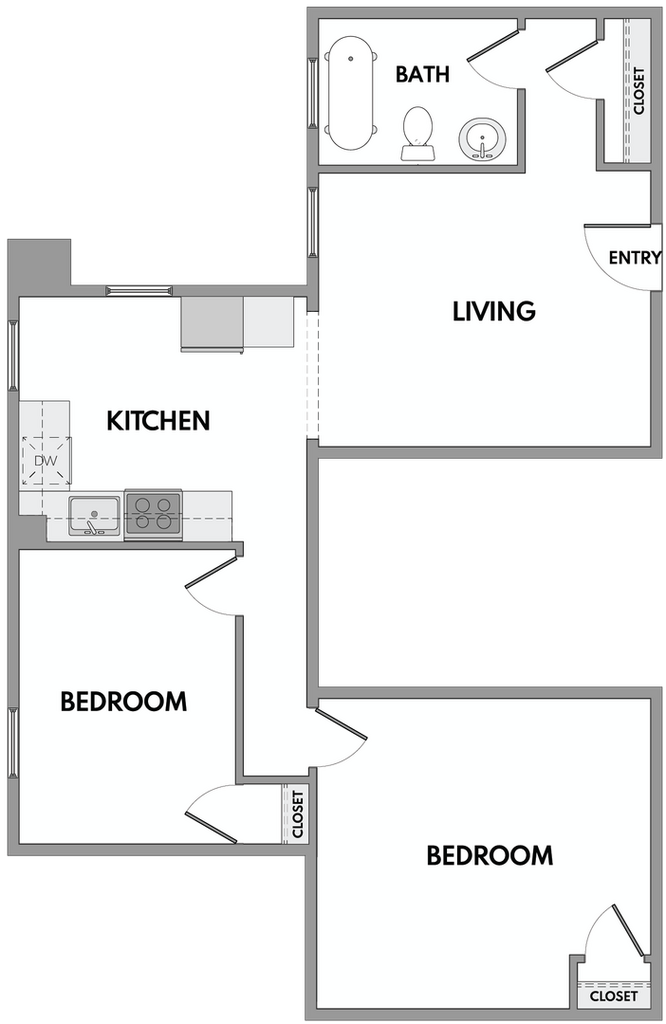 2 Beds, 1 Bath, 820 sq ftAvailable NowModel Gallery