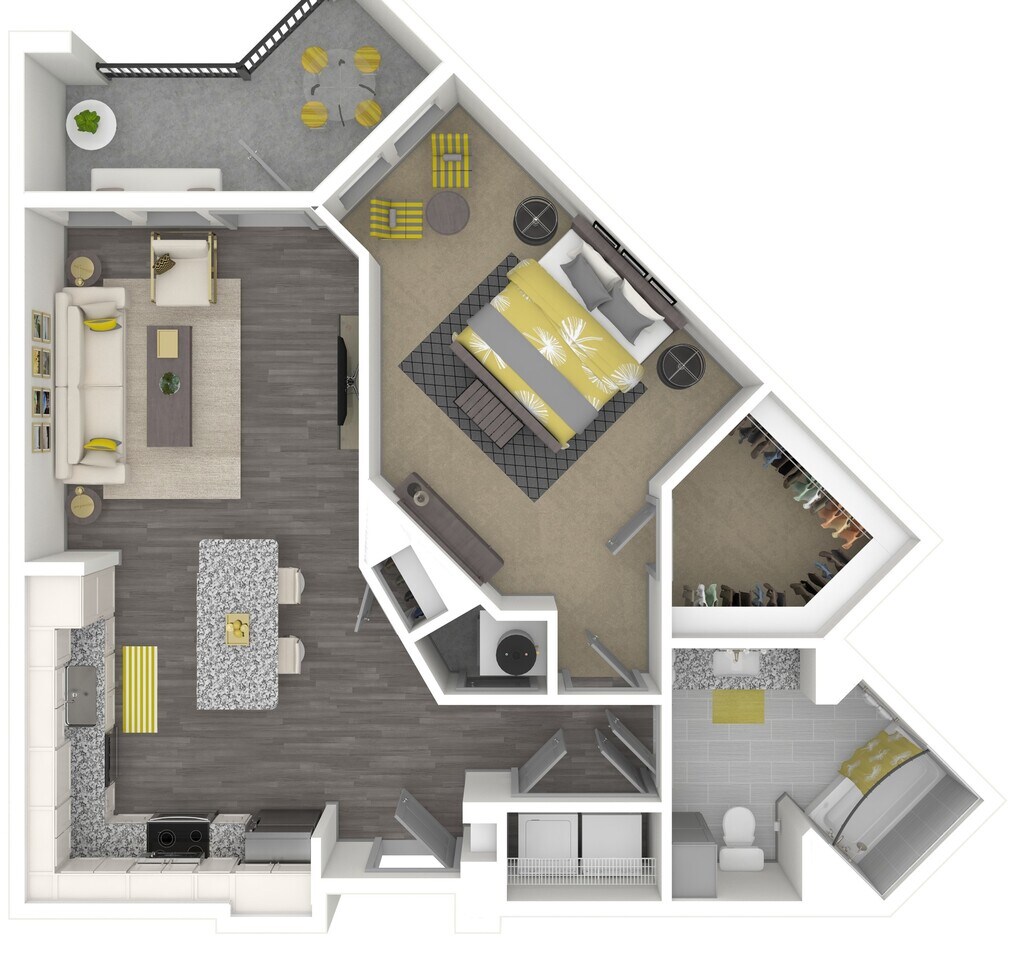 Apartment Model: The Jasper (A4.1) | 785 SFFrom $1,3891 Bedroom, 1 Bath, sq ftAvailable Now![]()