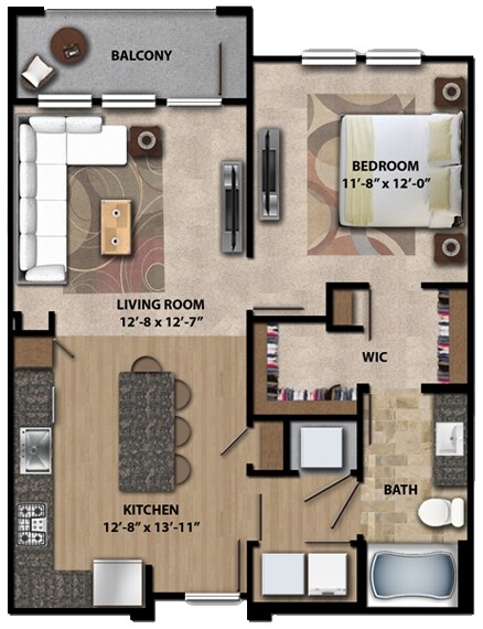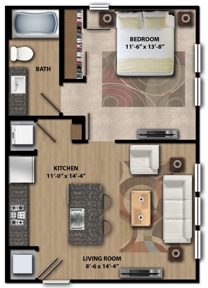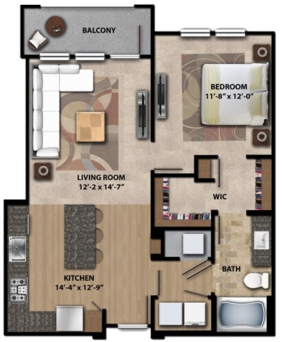 1 Bed, 1 Bath, 592 sq ftAvailable NowModel Gallery