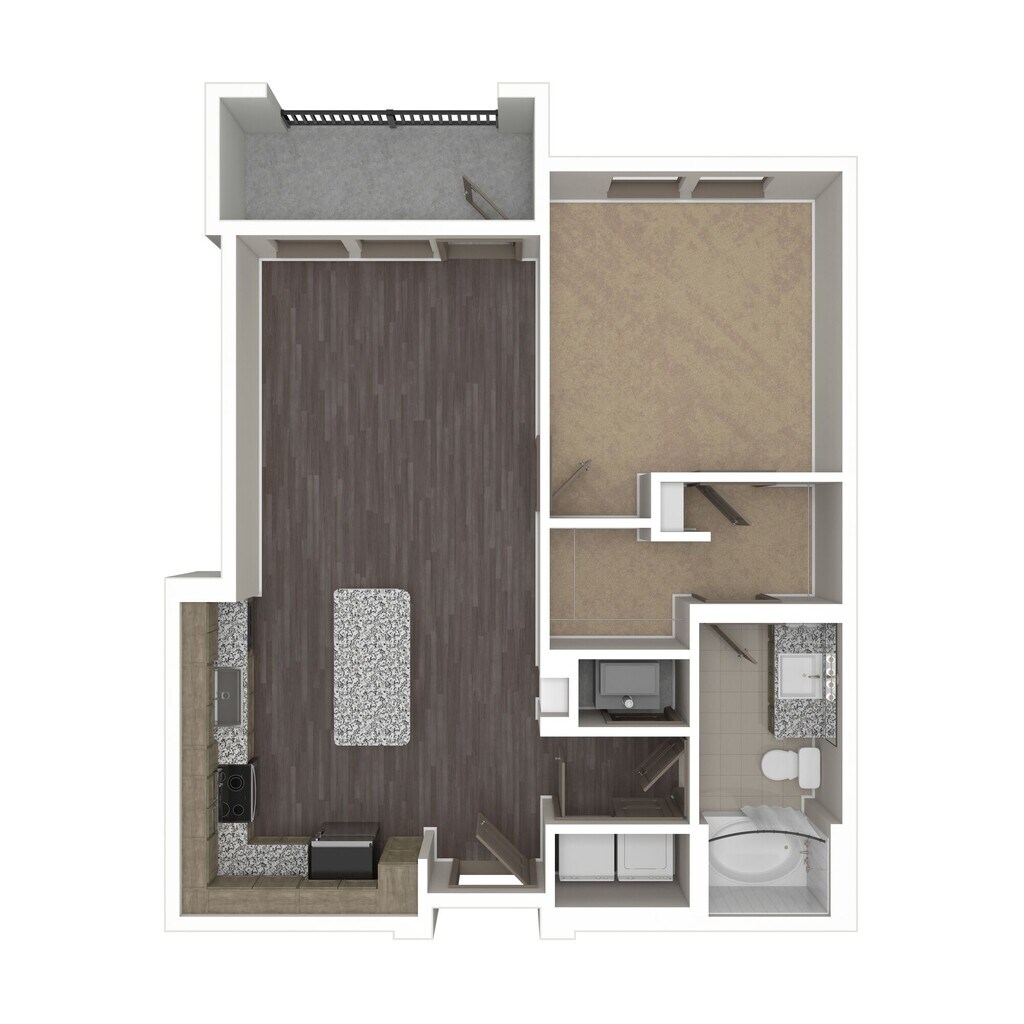 The Alaria - Floorplan 4 Apartment Unit: 6321Apartment Model: The Alaria$1,6651 Bedroom, 1 Bath, 592 sq ftAvailable NowThe Caci