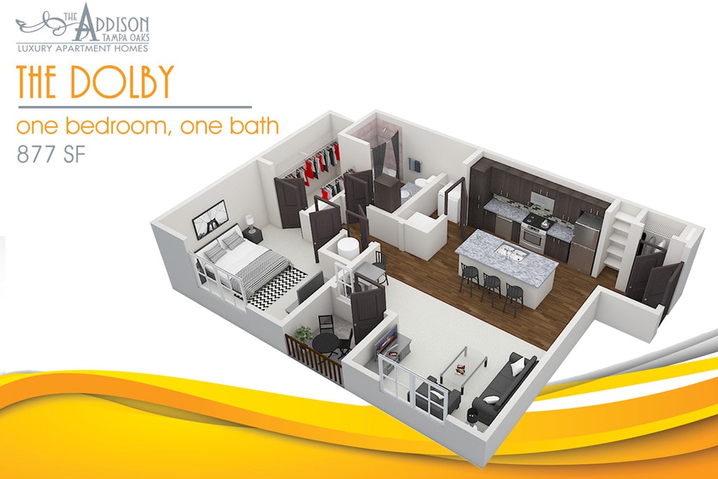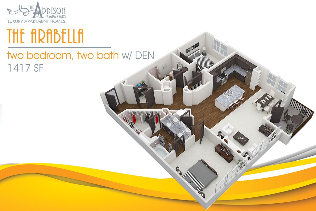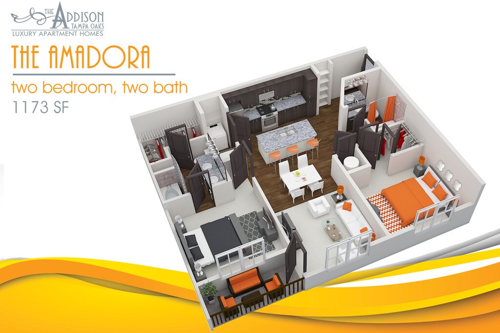 Studio to 3 Bedroom Apartments at The Addison at Tampa Oaks currently range from $1,470 to $2,220