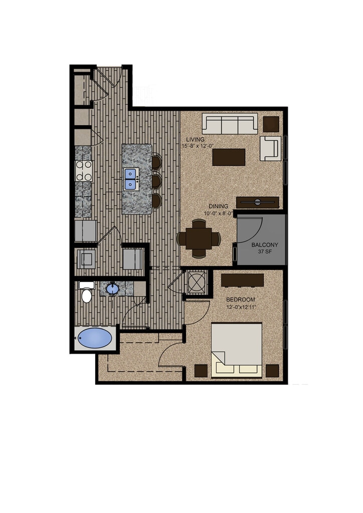 Studio, 1 Bath, 568 sq ftAvailable NowModel Gallery