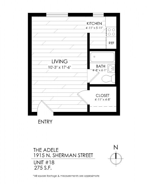 Studio - Floorplan 10 Apartment Unit: 11Apartment Model: StudioStudio, 1 Bath, 275 sq ftAvailable Now![]()