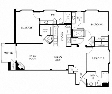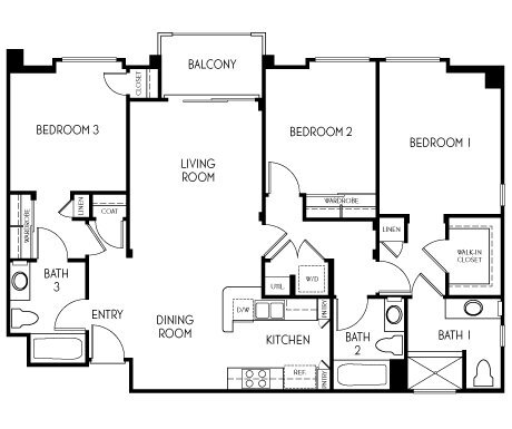 Apartment Model: 3FCall For Rates3 Bedroom, 3 Bath, 1378 sq ftUnavailable![]() - 3F - Floorplan 1