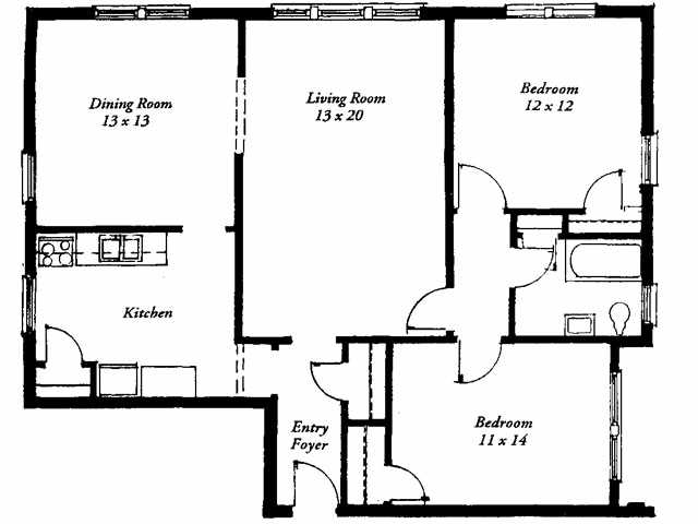 1 Bedroom B - Floorplan 1 2 Bedrooms