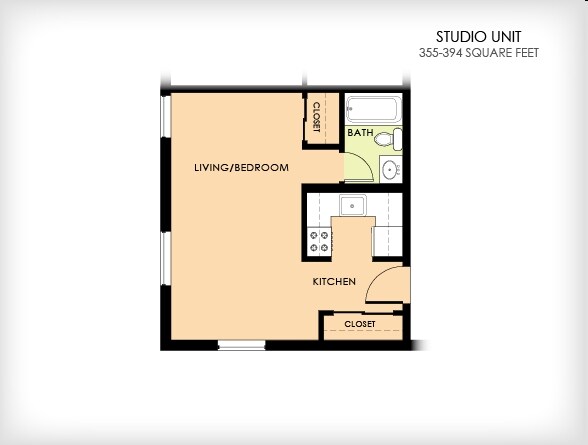 Studio, 1 Bath, 338-445 sq ftAvailability Details