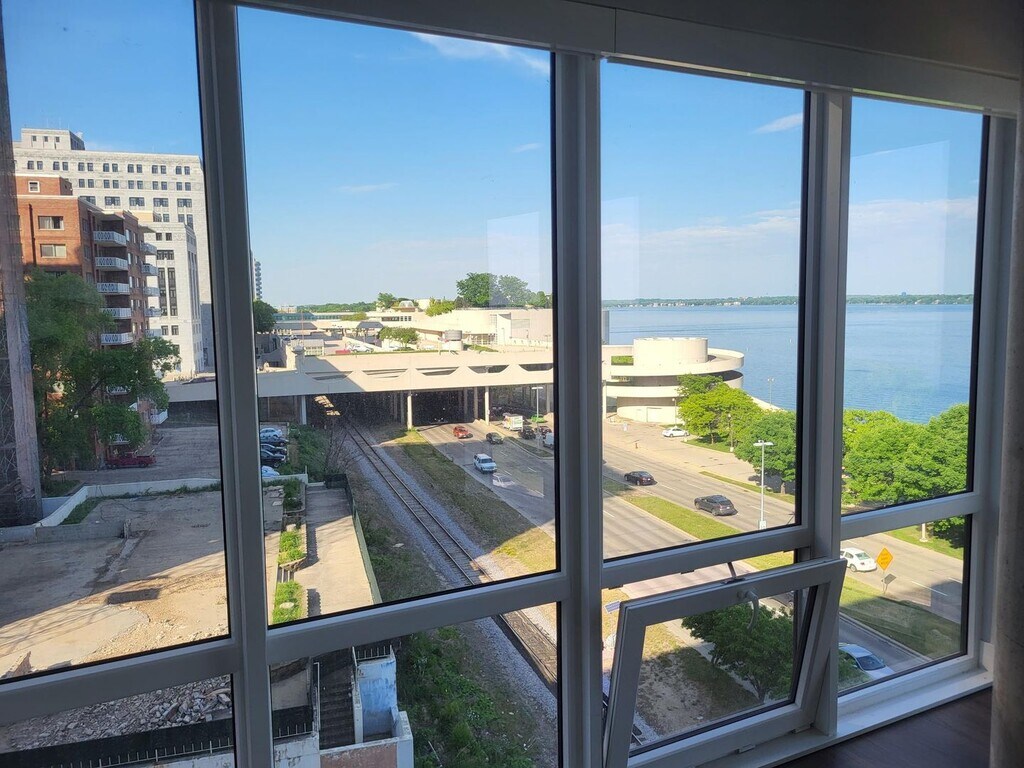 Introducing 179 W. Wilson #417, a modern studio apartment located in the heart of Madison, WI. This unit features a sleek design with top-of-the-line amenities including air conditioning, in-unit laundry, a dishwasher, and a microwave. Residents can enjoy stunning views of the nearby lake from the comfort of their own balcony. The building offers a variety of communal spaces such as a fitness center, rooftop deck, community terrace, and solarium. For those with furry friends, there is a convenient dog run and pet wash station on-site. With underground parking available, as well as a bike repair station, this apartment truly has everything you need for a convenient and comfortable living experience. Don't miss out on the opportunity to call 179 W. Wilson #417 home.