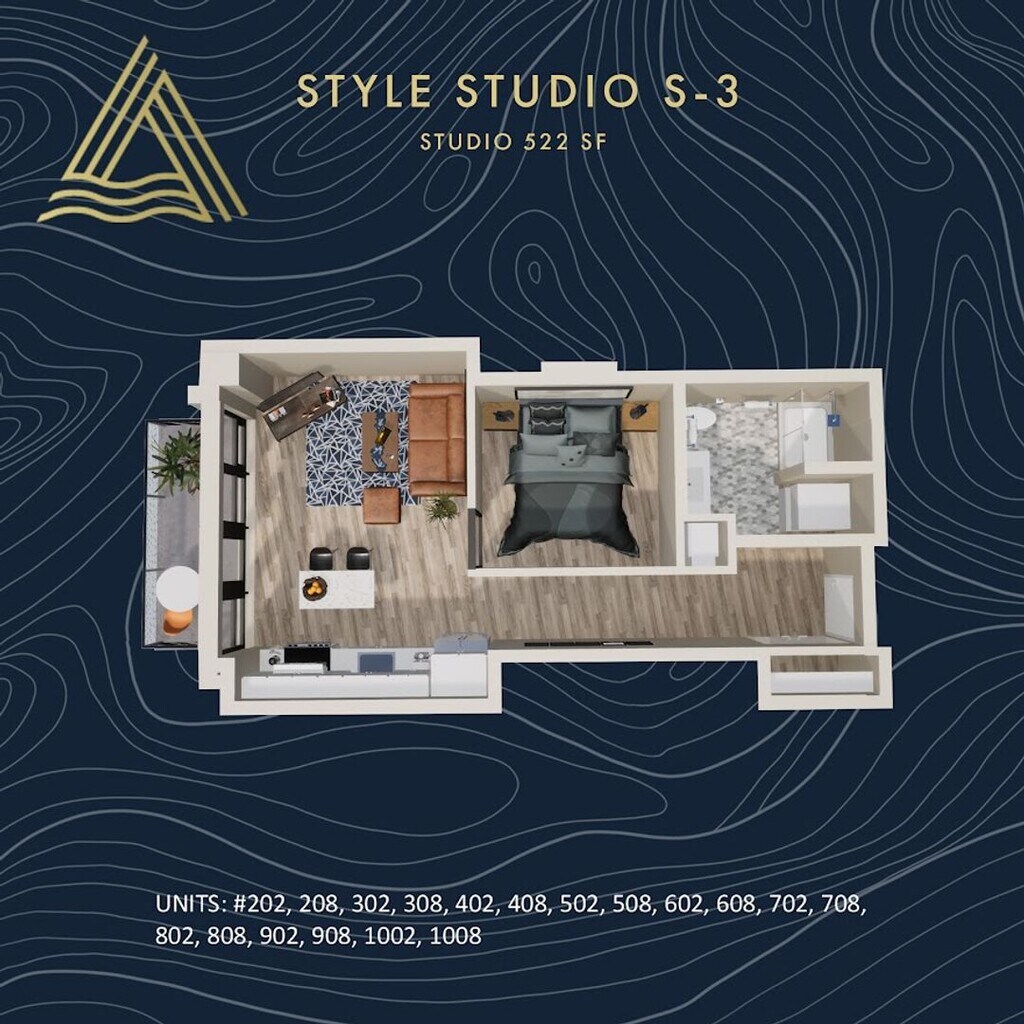 Studio S-3 - Floorplan 2 Apartment Unit: #602Apartment Model: Studio S-3$1,790Studio, 1 Bath, 522 sq ftAvailable December 1, 2025Style S-5