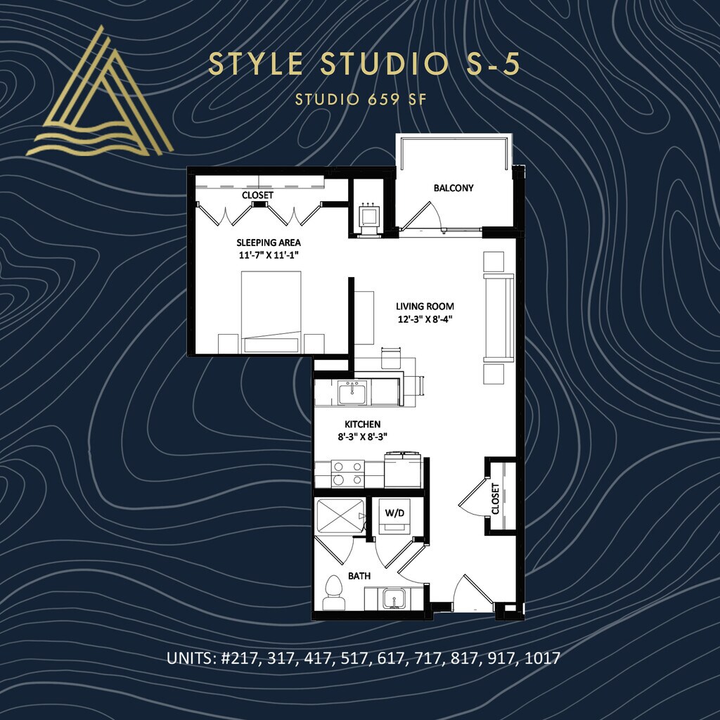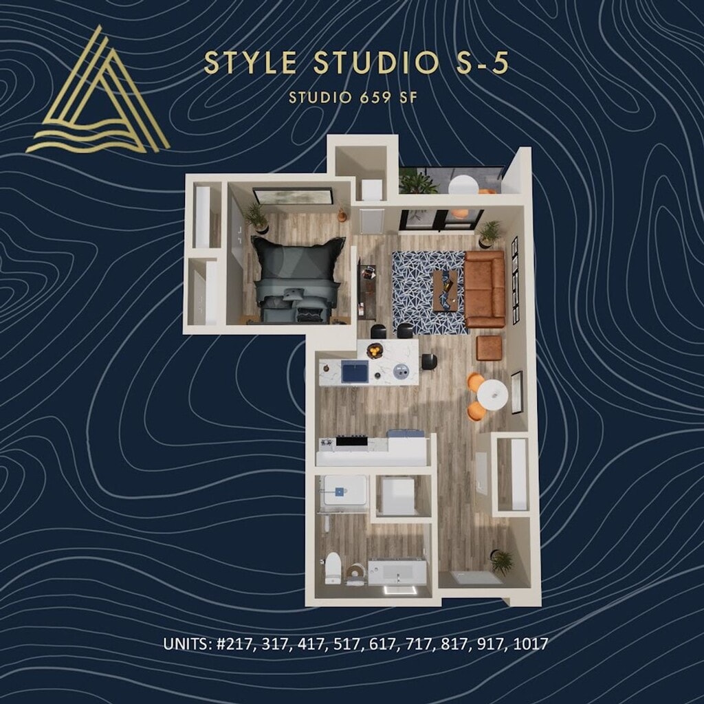 Apartment Model: Style S-5$1,950Studio, 1 Bath, 659 sq ftAvailable December 1, 2025FloorplansPhotos![]()