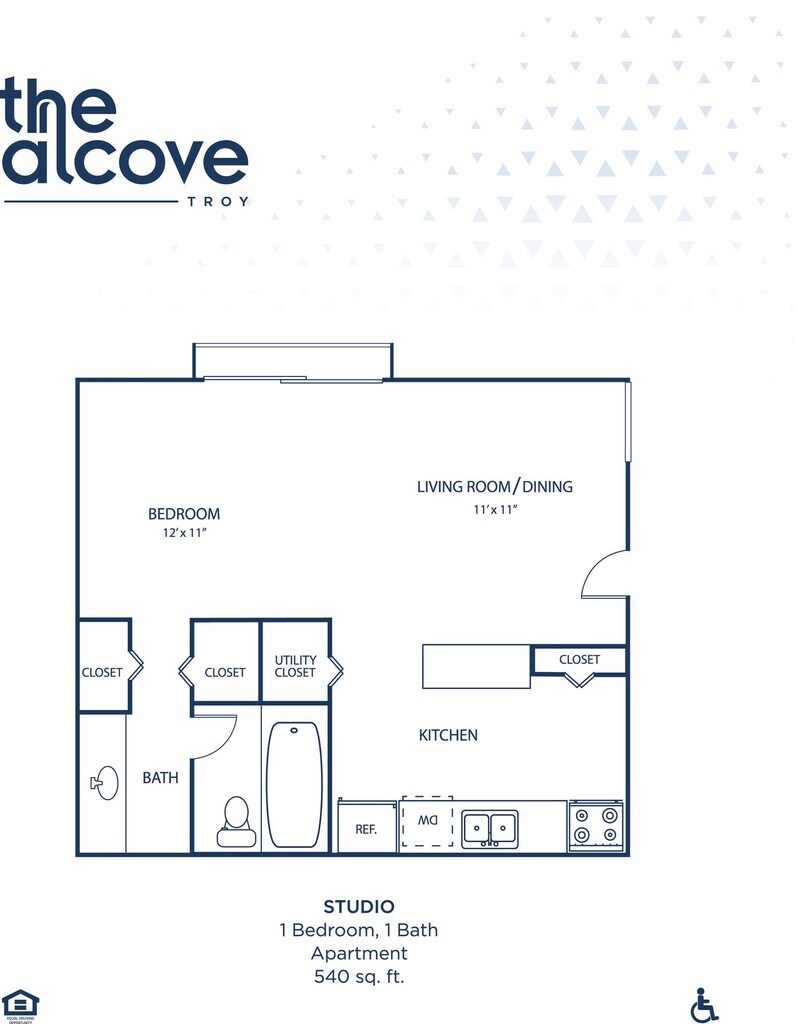 Studio - Floorplan 11 Apartment Unit: 02-0204Apartment Model: Studio$9951 Bedroom, 1 Bath, 540 sq ftAvailable January 23, 2026Loft