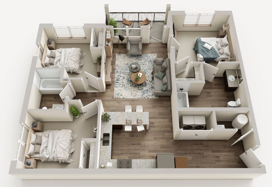 2 Bed 2 Bath - Floorplan 1 3 Bedrooms