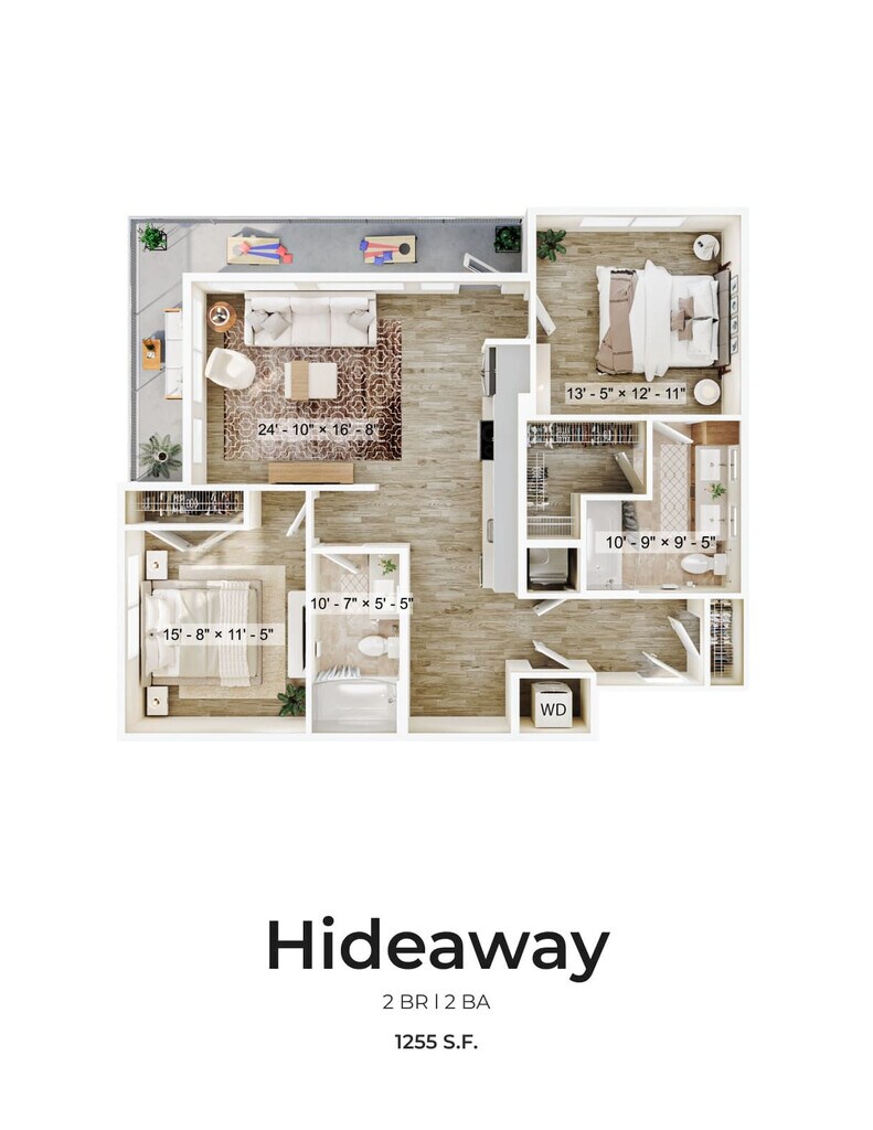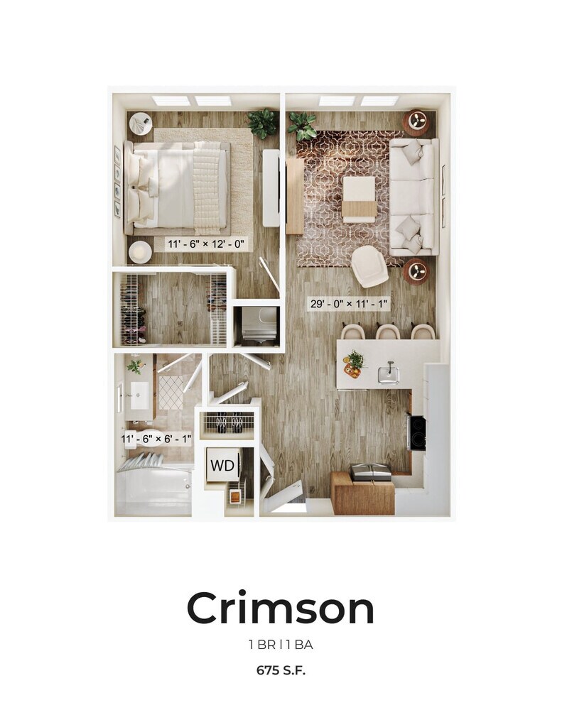 1 Bed, 1 Bath, 645 sq ftAvailable NowModel Gallery