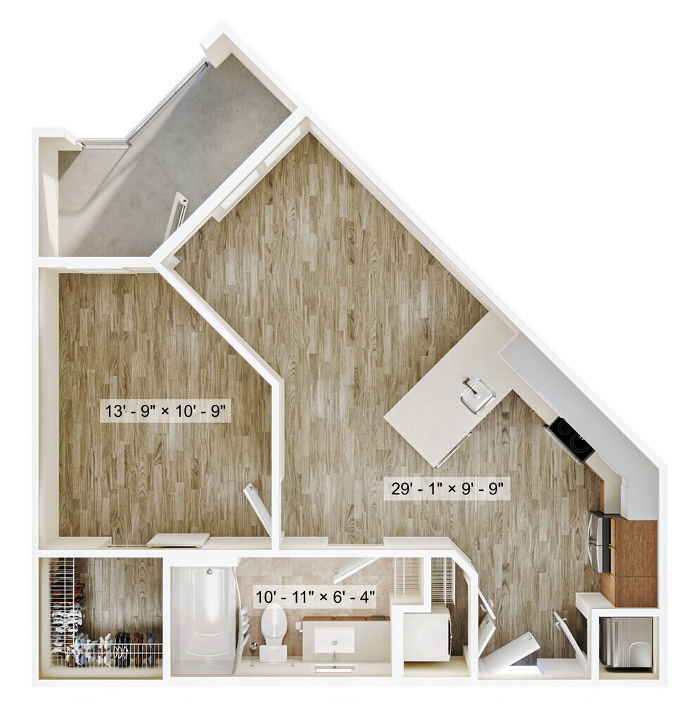 Studio, 1 Bath, 542 sq ftAvailable NowModel Gallery