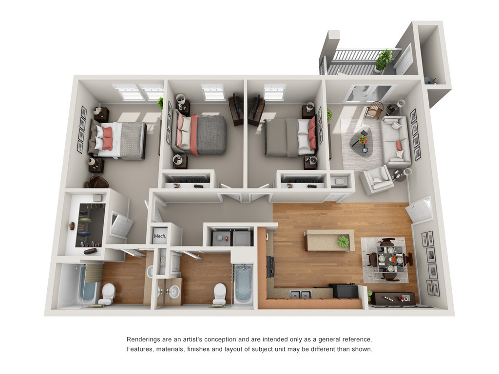 3 Beds, 2 Baths, 1164 sq ftModel Gallery
