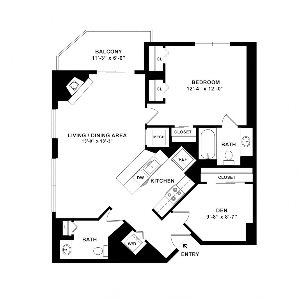 1 Bed, 1 Bath, 694 sq ftAvailable NowModel Gallery