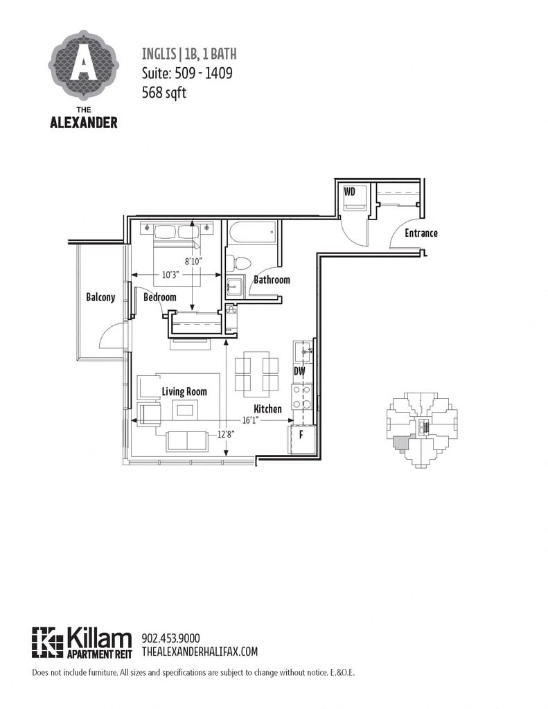 **Limited-Time Offer: Move In Today & Don't Pay Until January 1st, 2026! Contact Us For Details.** Killam's new downtown development The Alexander, is located at the iconic Halifax address of 5121 Bishop Street. The Alexander provides convenient access to the historic Brewery Square with on-site retailers like the Historic Farmers Market and Alexander Keith's Brewery. The suites offer amazing views of the city and spectacular views of the Halifax Harbour. Enjoy walks along the waterfront, dining at the most popular restaurants, a night on the town or a quiet evening on your balcony or terrace. The Alexander suites feature quartz counter tops, luxury vinyl tile, stainless steel kitchen appliances, in-suite laundry and a balcony or terrace. The building offers a well-equipped fitness room, spacious lobby, common room, large landscaped terrace and BBQ area and indoor access to the Brewery Market.