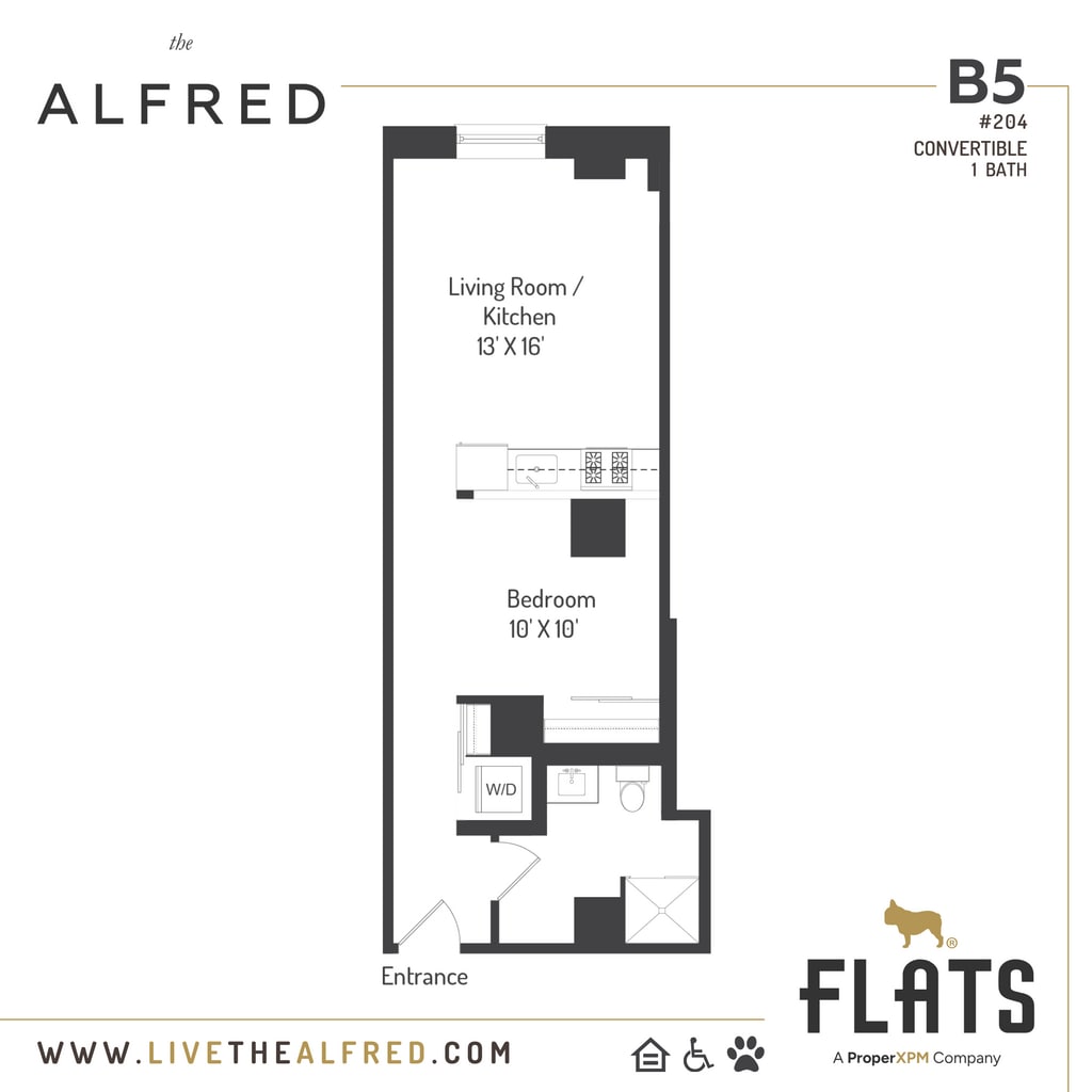 B5 - Floorplan 2 Apartment Unit: 204Apartment Model: B5$1,895Studio, 1 Bath, 556 sq ftAvailable NowApartment Unit: 1204Apartment Model: B5$2,130Studio, 1 Bath, 556 sq ftAvailable December 5, 2025Floorplan B7