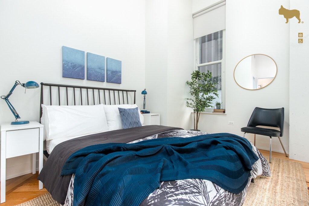 Approachable Luxury Living in the Chicago Loop! The Alfred offers chic, renovated apartments within a former vintage office building. The Alfred provides amenities, including a roof deck, indoor lounge with workspaces, pool table, kitchenette, and a gym with cardio and strength training machines. In the mornings and early afternoons, power up with a coffee and snack from the Happy Monday coffee shop in your lobby. Apartments include in-unit laundry, custom no-slam cabinetry in kitchens and bathrooms, with select apartments including kitchen islands, dishwashers, various floor finishes from original hardwood flooring to poured concrete, and original, oversized Chicago-style windows. The Alfred is named after the building's original architect, Alfred Alschuler.
