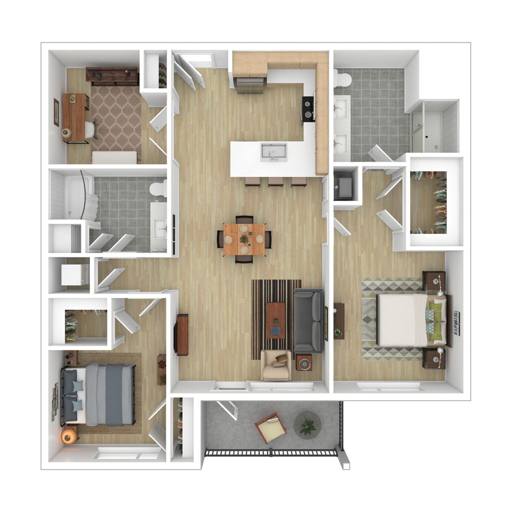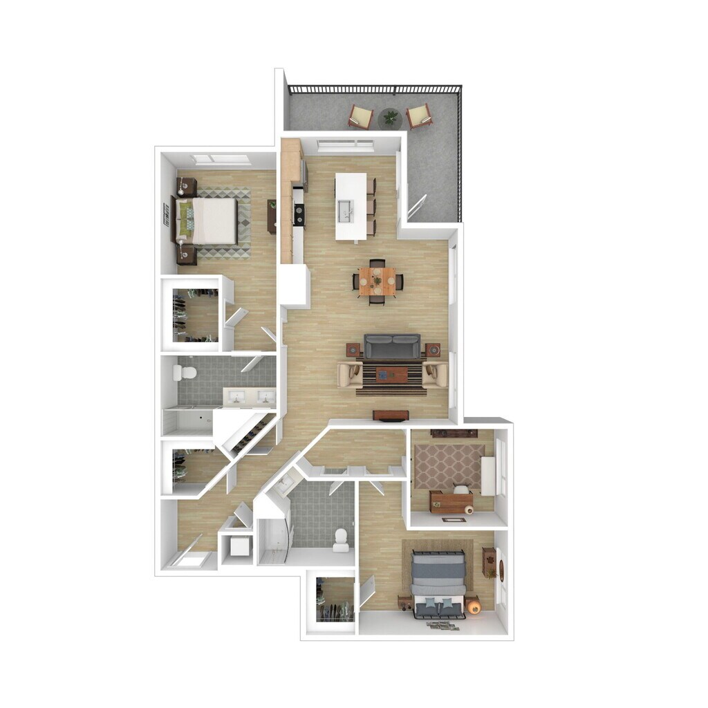 Apartment Model: 2x2 Corner$5,9402 Bedroom, 2 Bath, 1199 sq ftAvailable January 31, 2026![]()