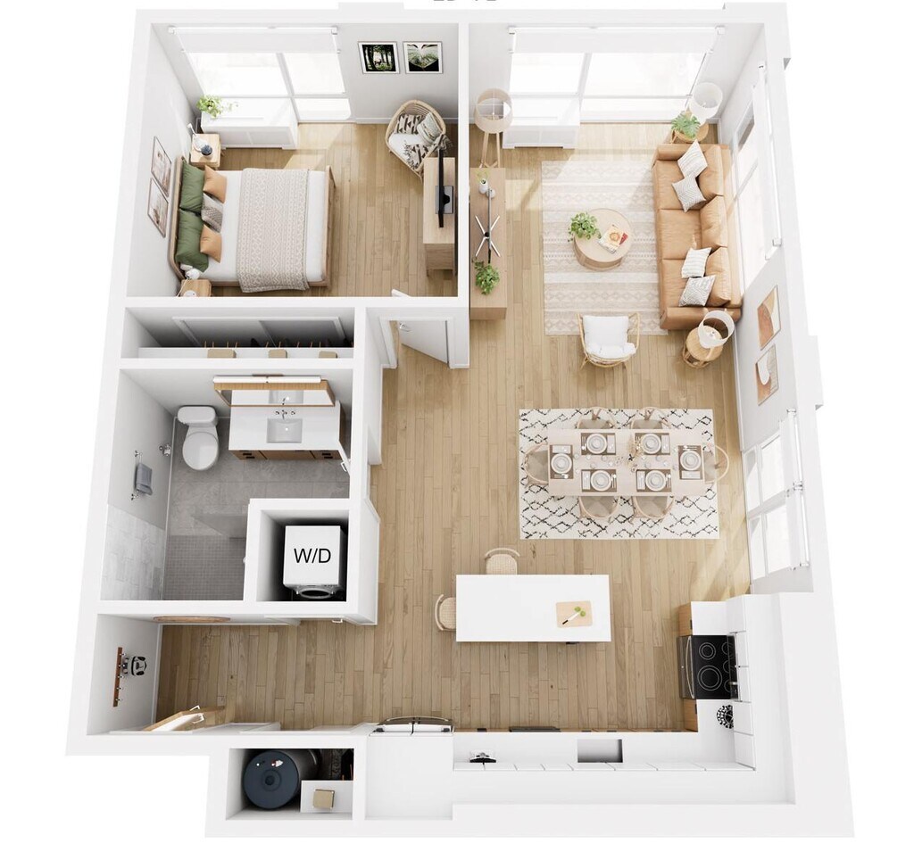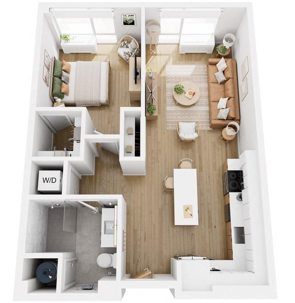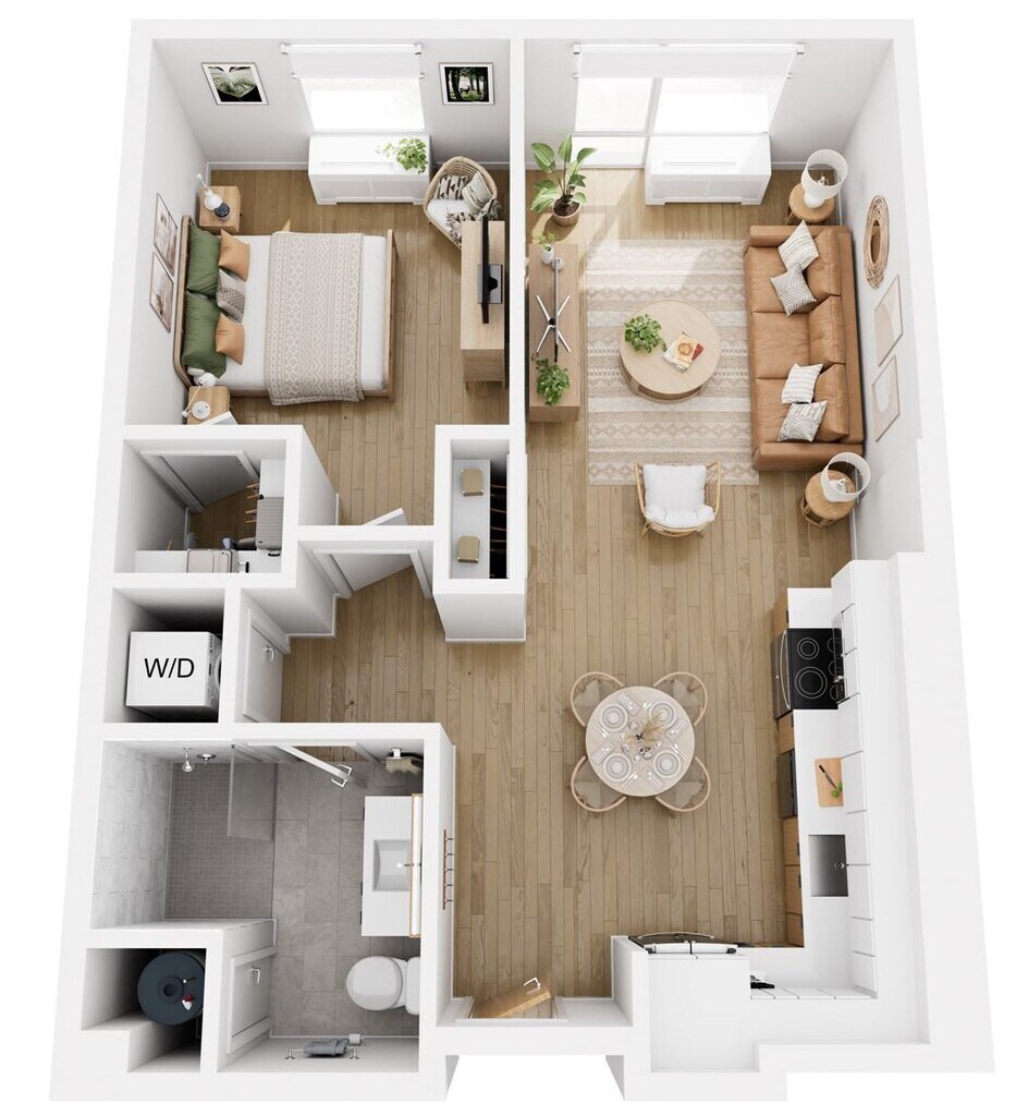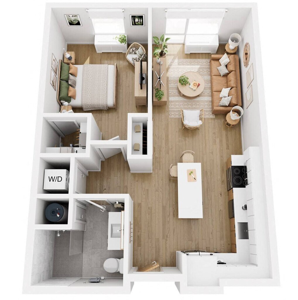 Apartment Model: One Bedroom E$2,2001 Bedroom, 1 Bath, 813 sq ftUnavailable![]() - One Bedroom E - Floorplan 1