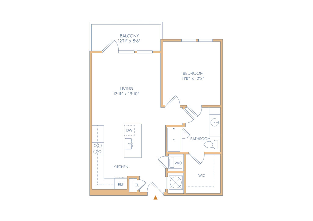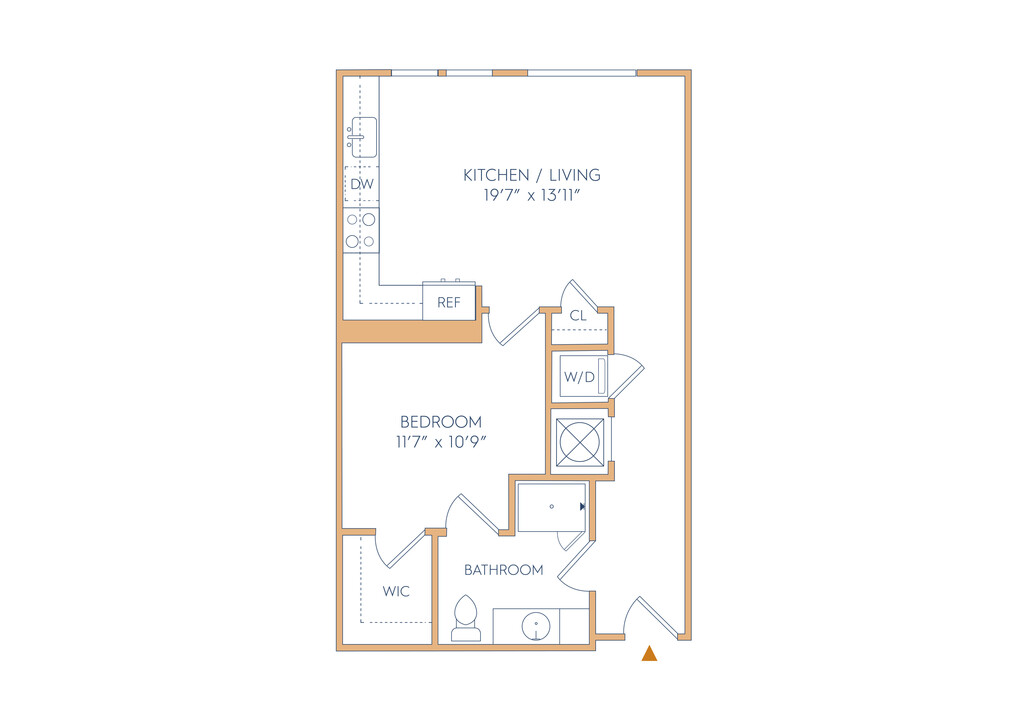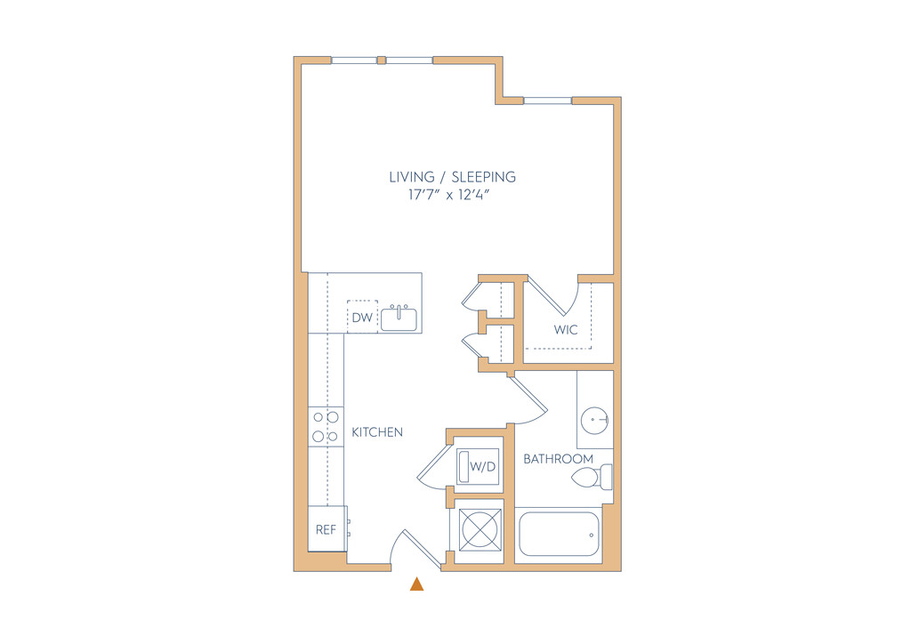 S2 - Floorplan 1 Apartment Unit: The Allison-203Apartment Model: S2Studio, 1 Bath, 588 sq ftAvailable NowFloorplan S1