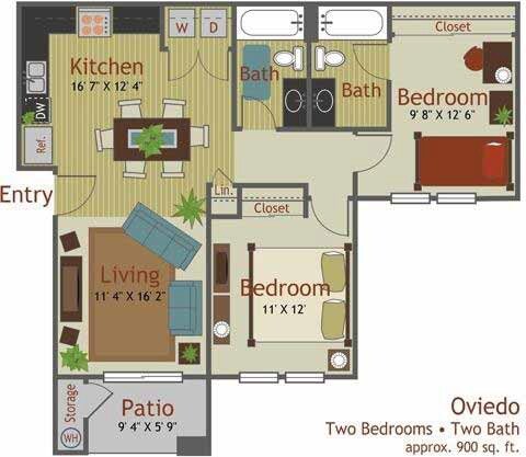 Apartment Model: B1From $1,3832 Bedroom, 2 Bath, 900 sq ftAvailable Now![]()