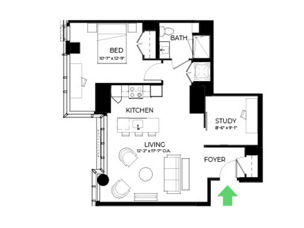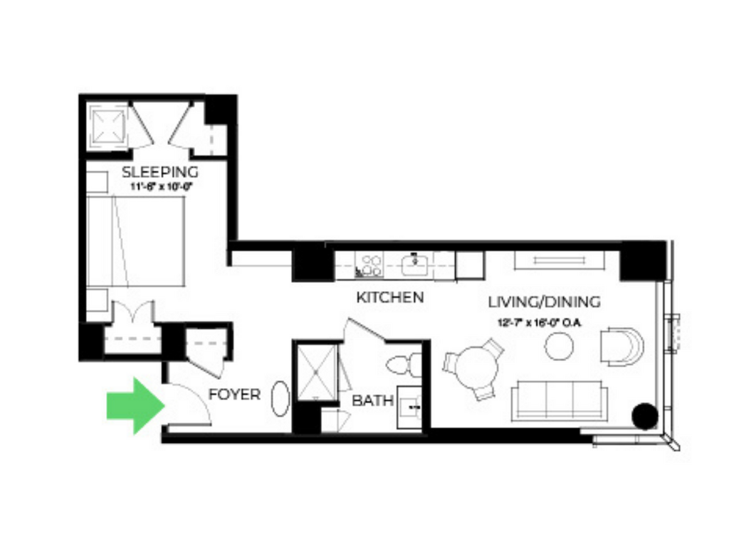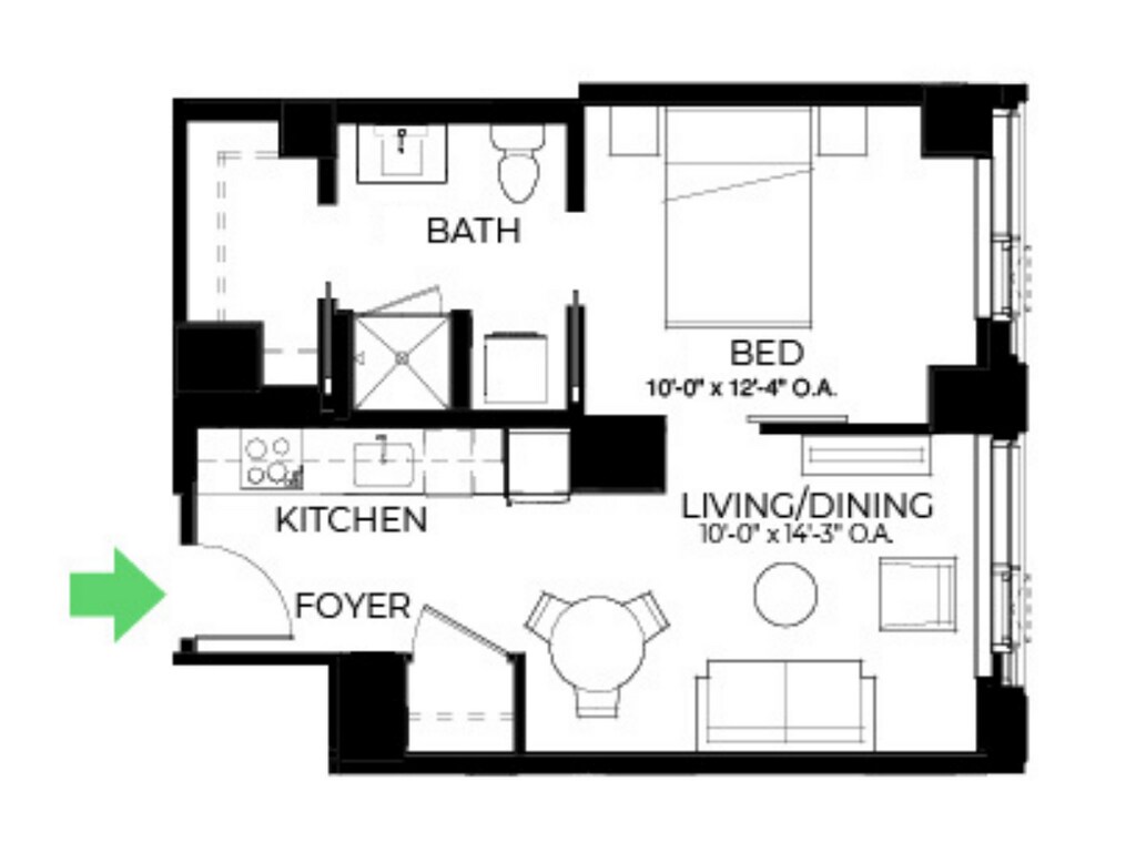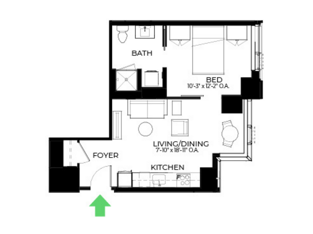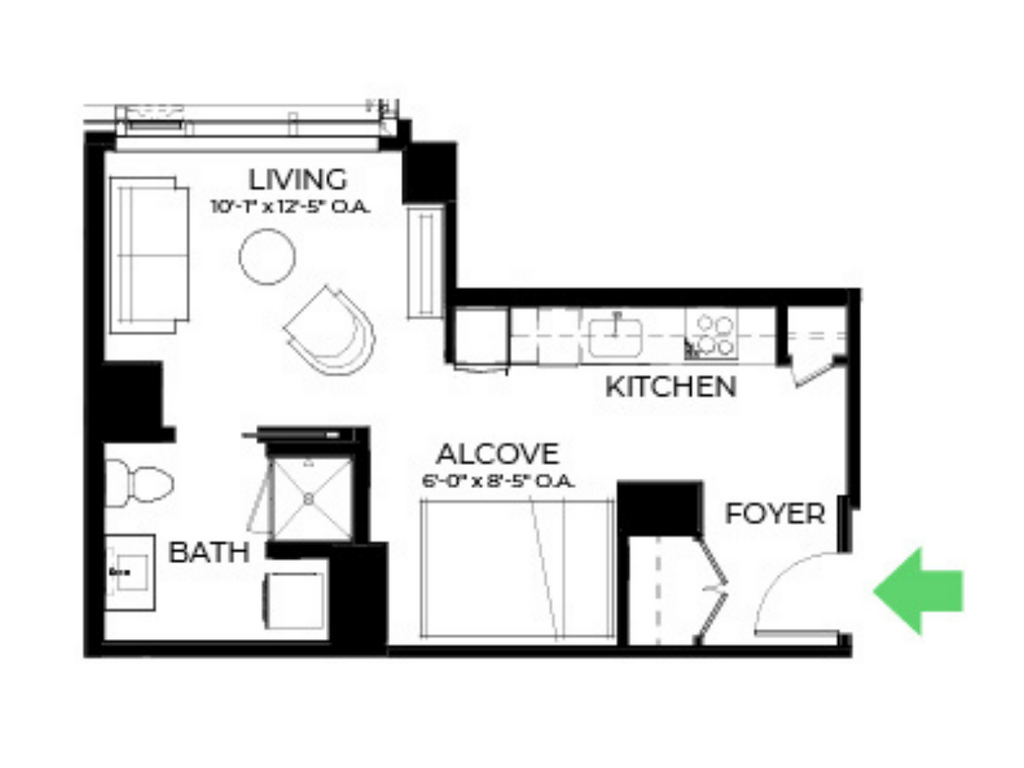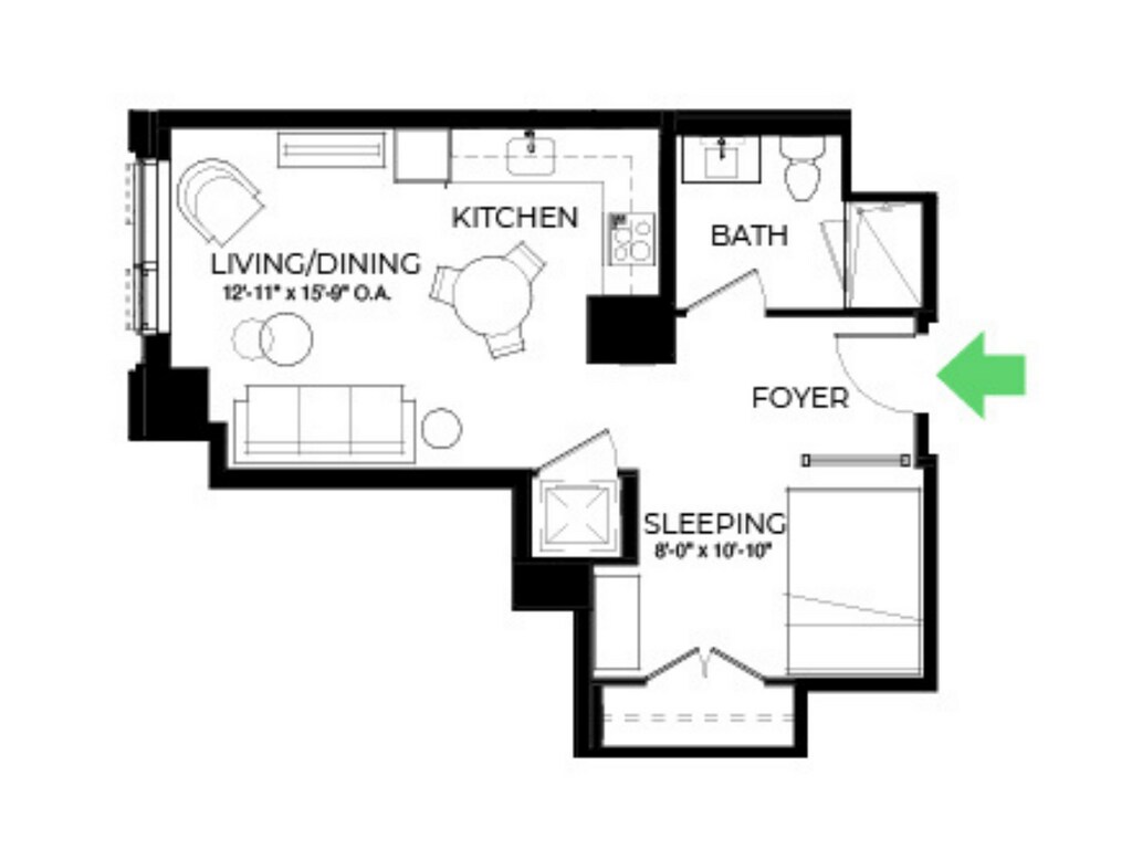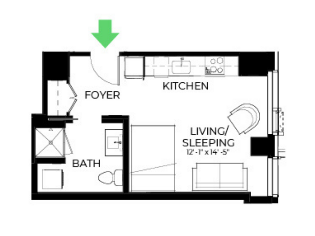 S28 | Studio | 1 Bath - Floorplan 1 S71 | Studio | 1 Bath