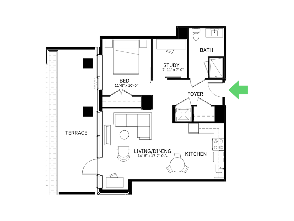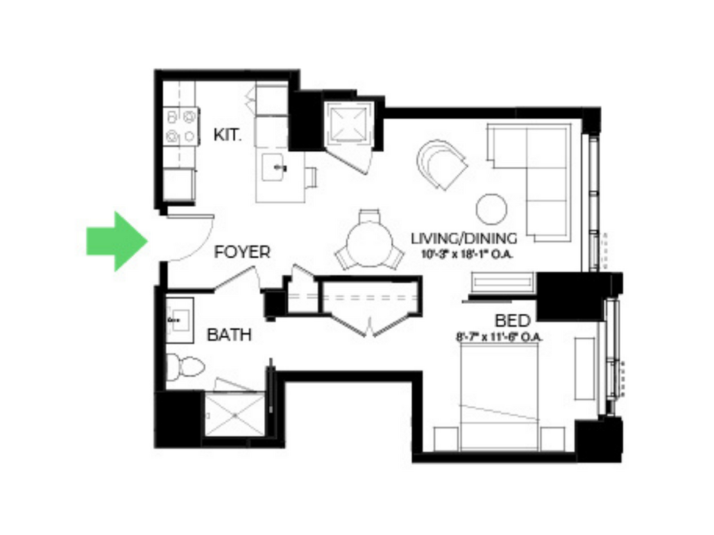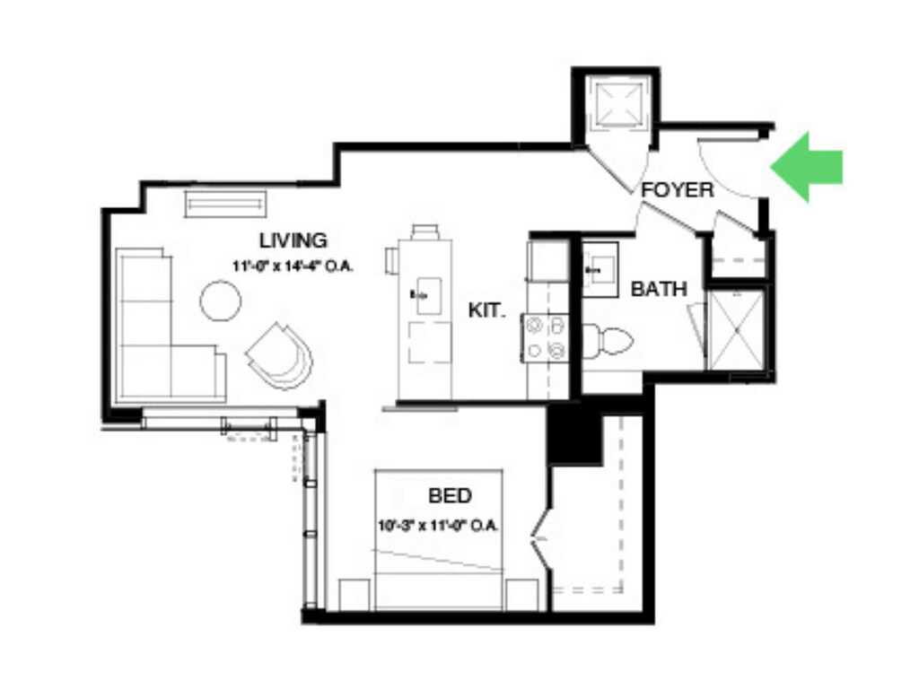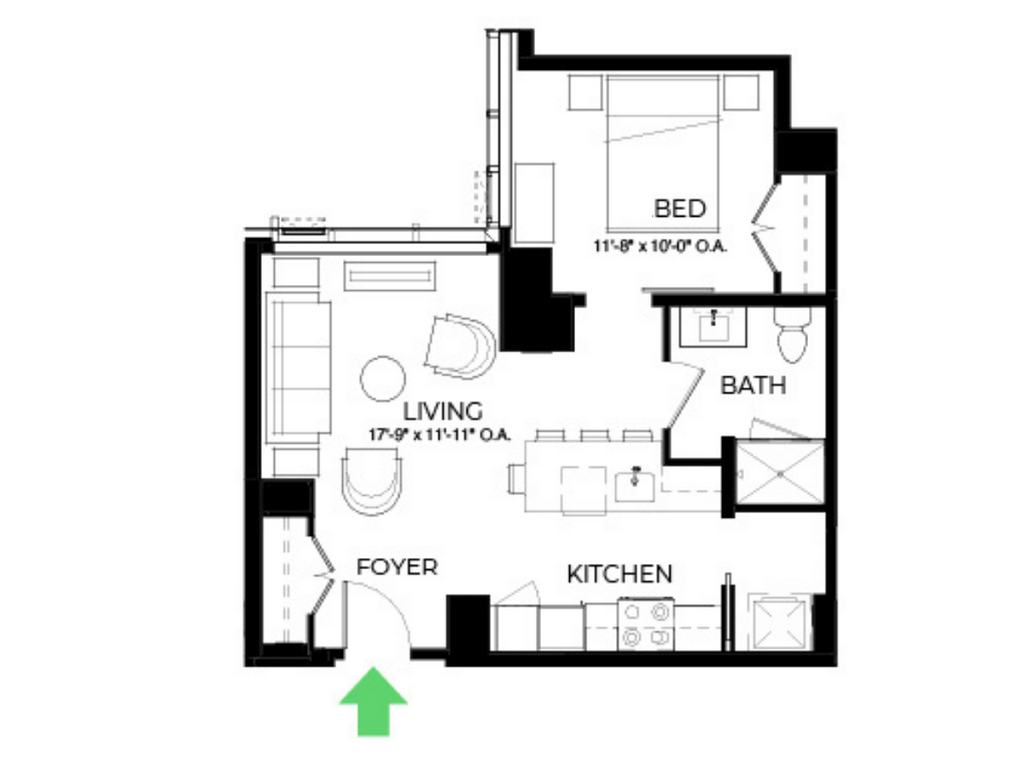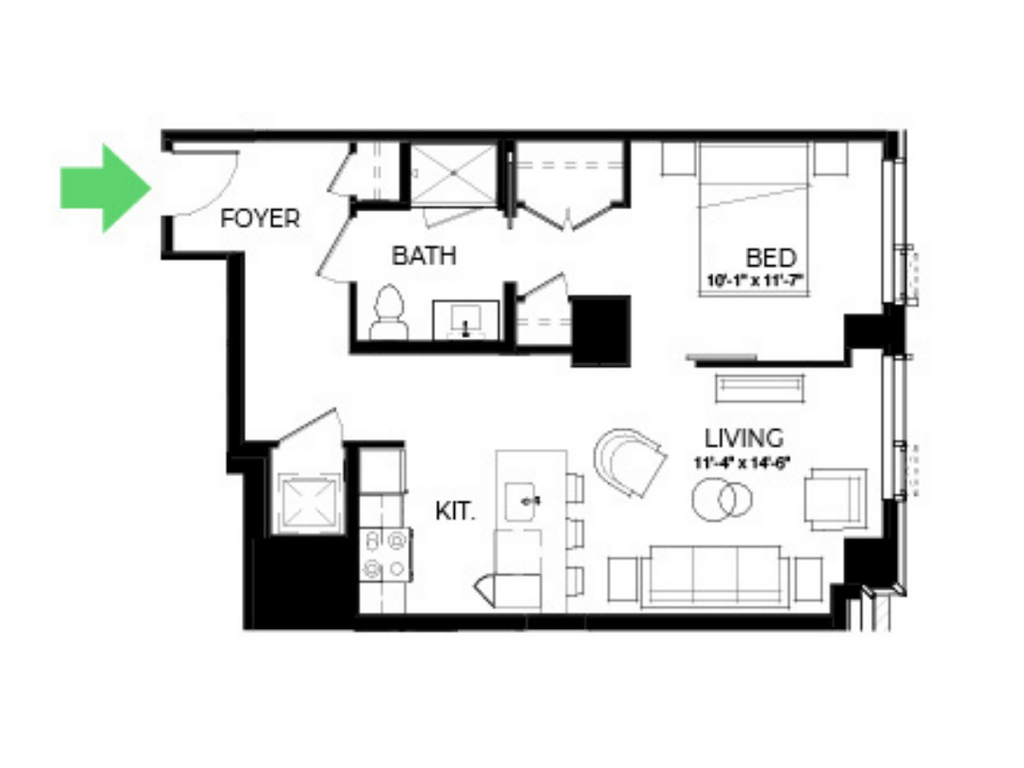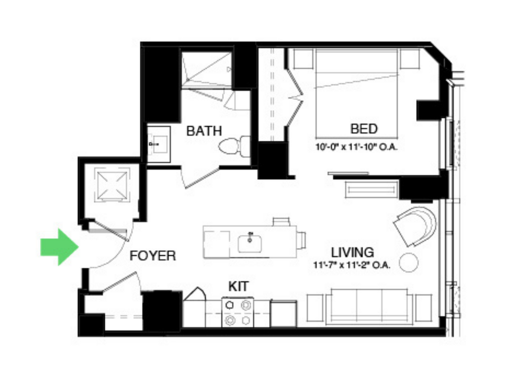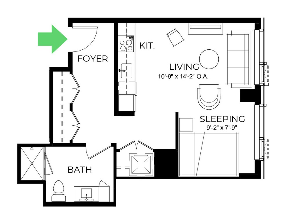S28 | Studio | 1 Bath - Floorplan 1 S71 | Studio | 1 Bath