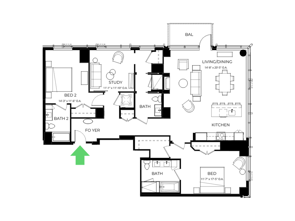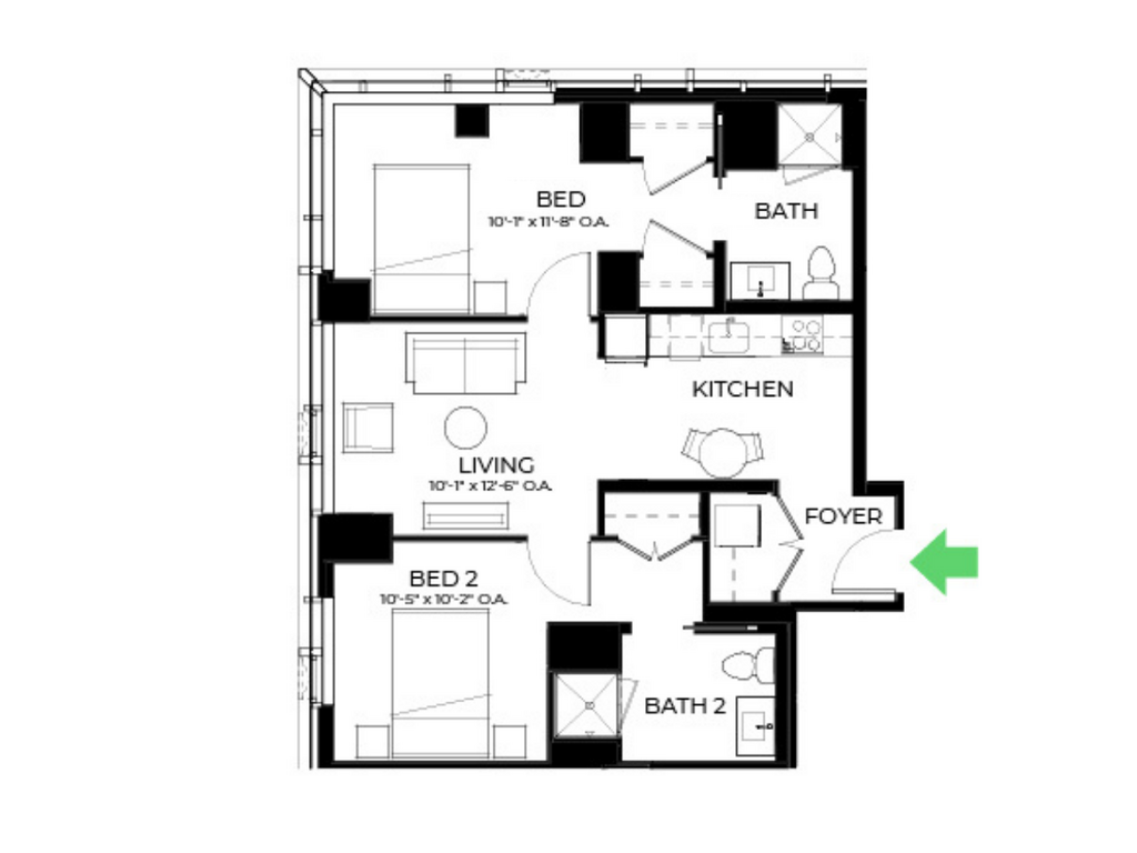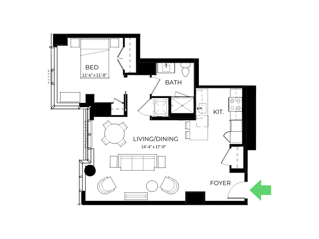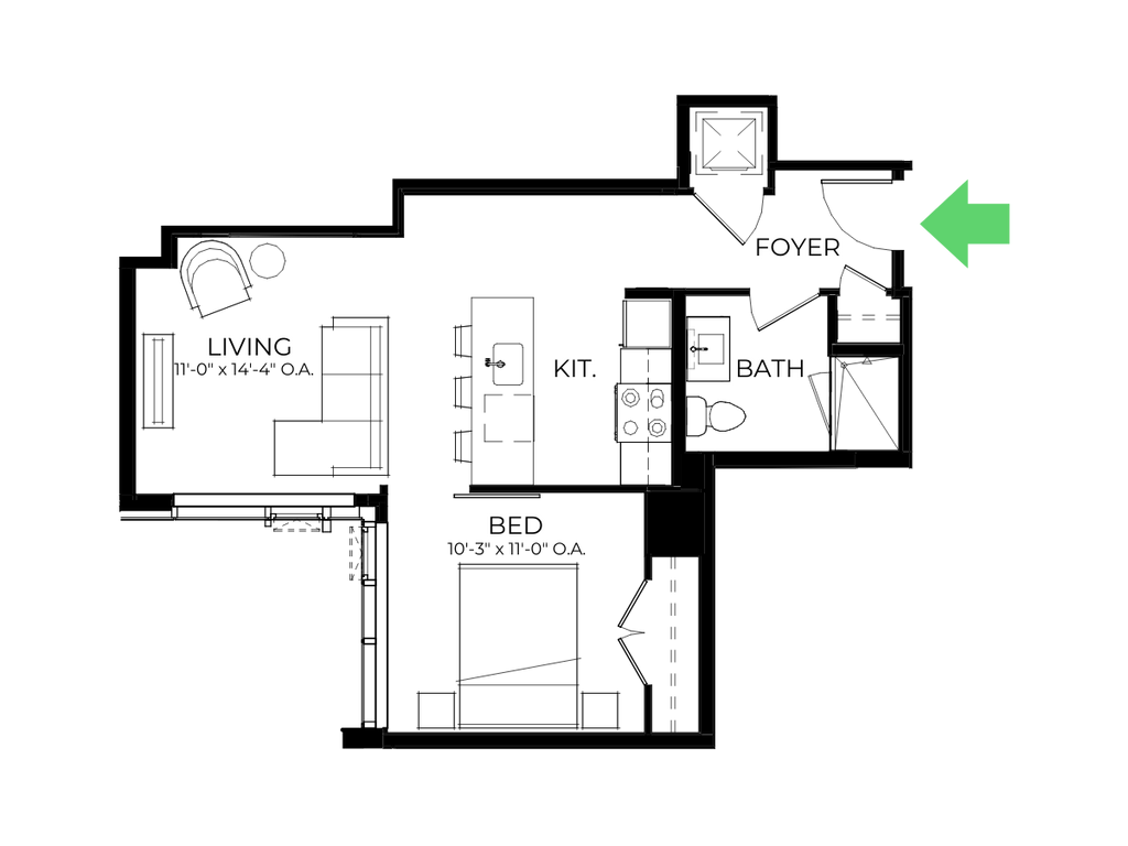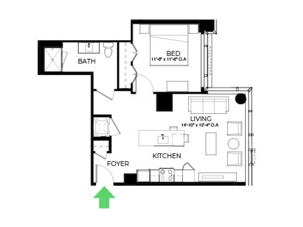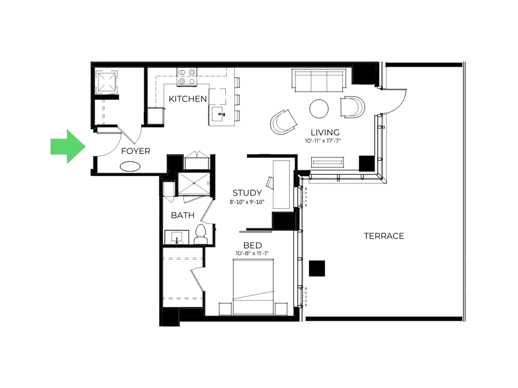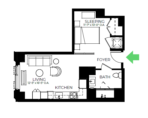 S28 | Studio | 1 Bath - Floorplan 1 S71 | Studio | 1 Bath