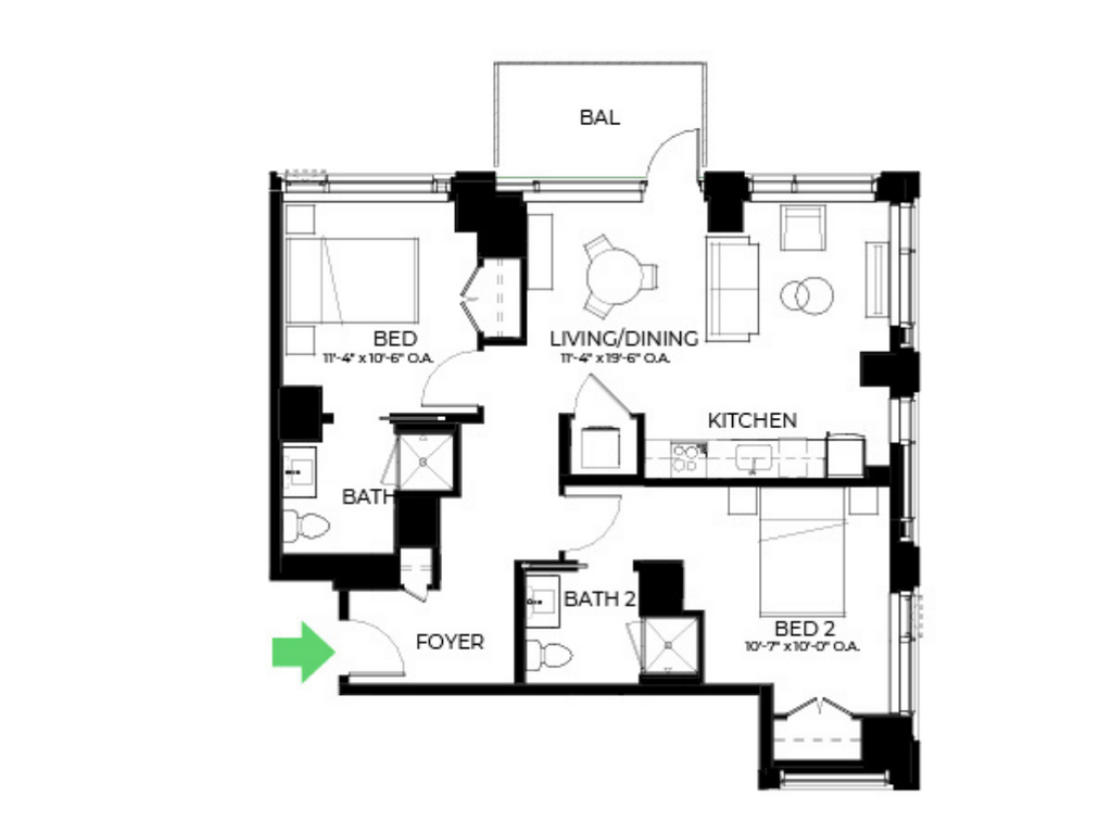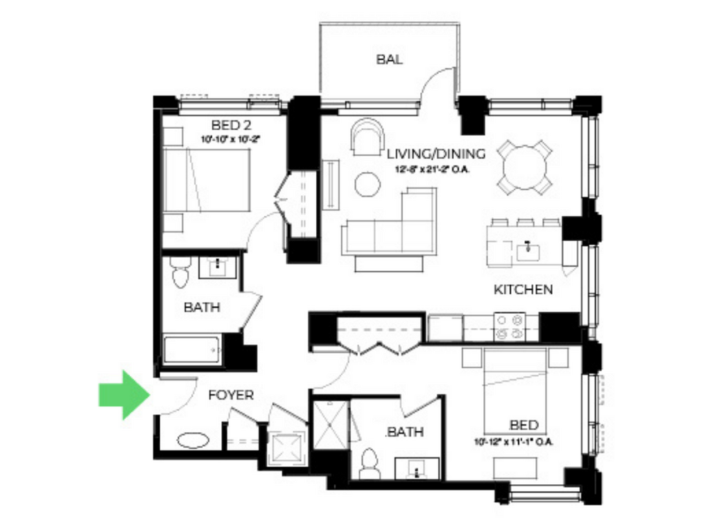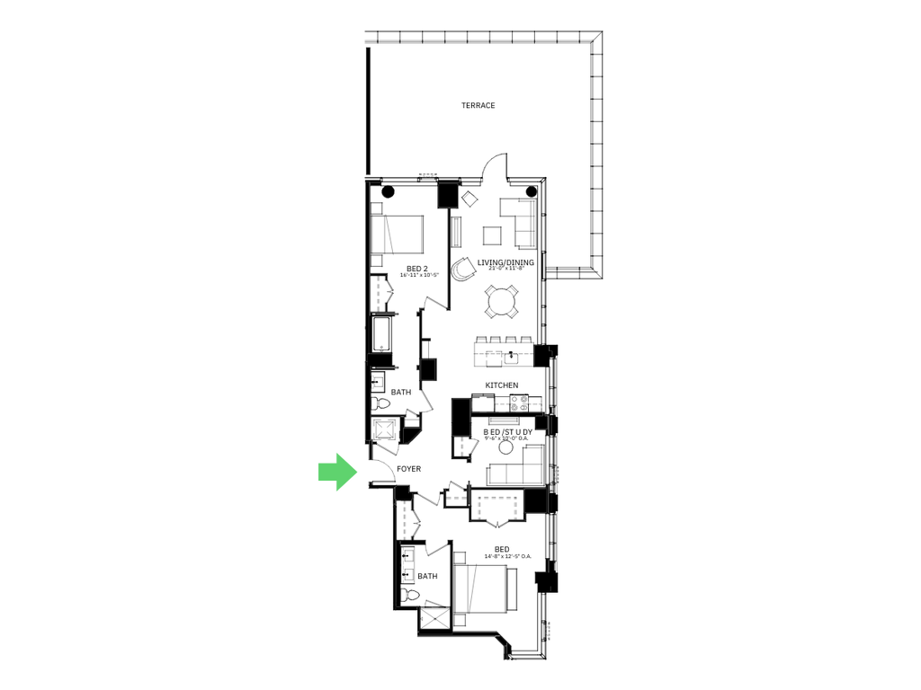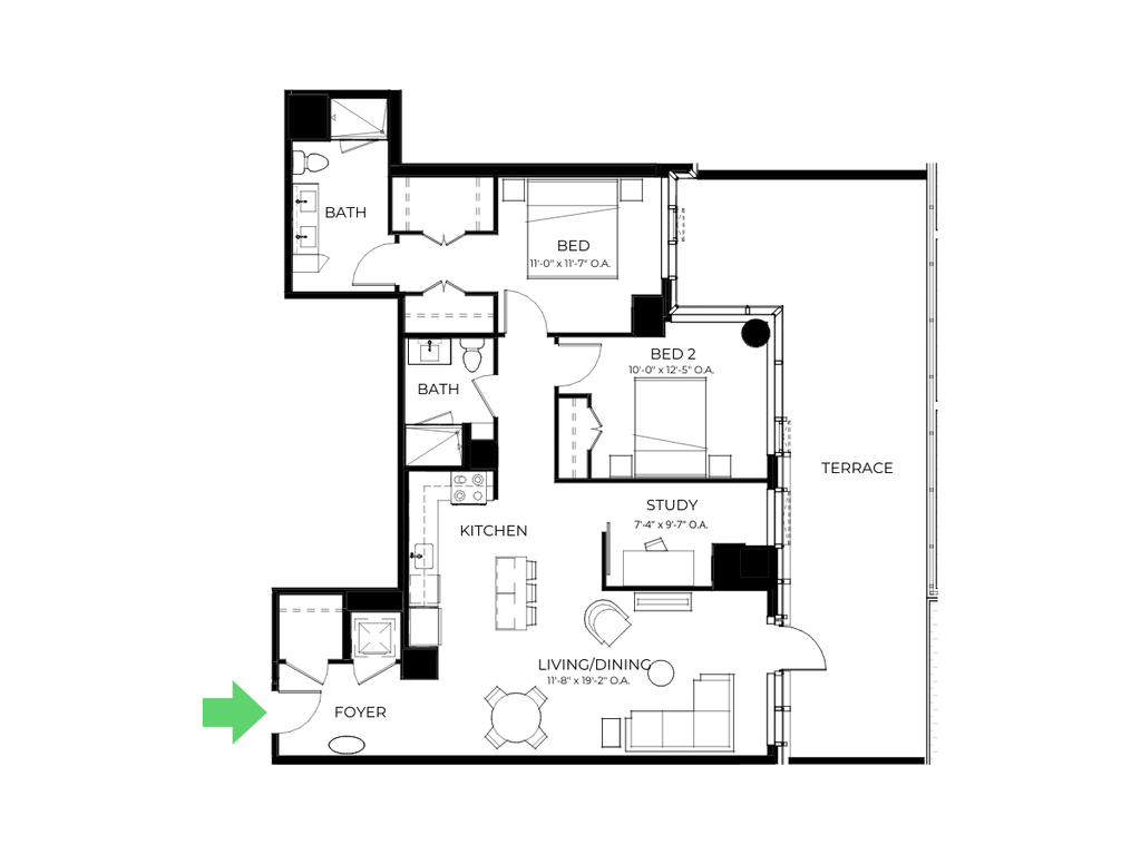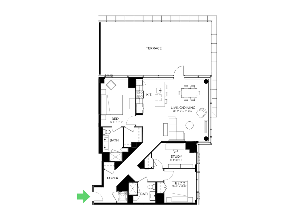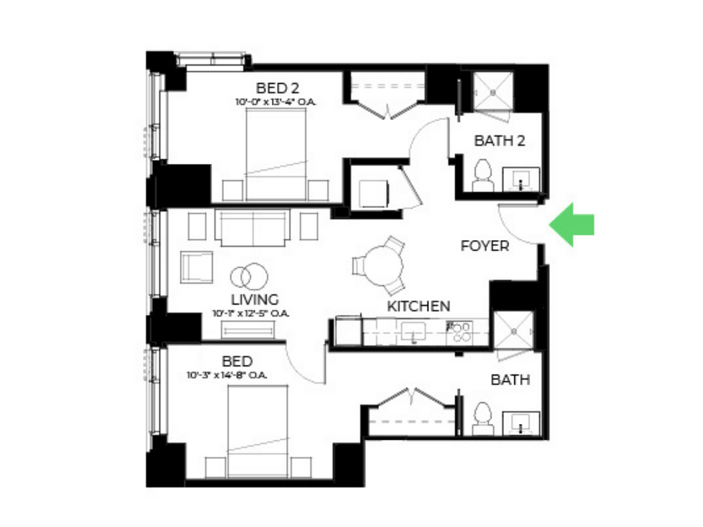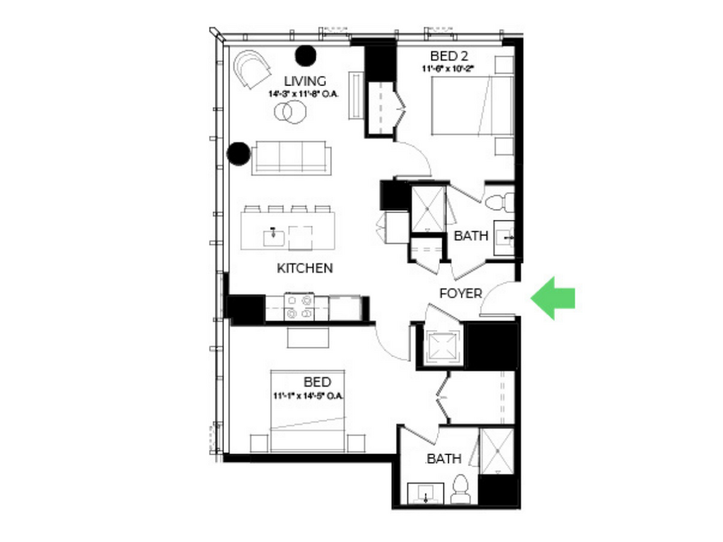 S28 | Studio | 1 Bath - Floorplan 1 S71 | Studio | 1 Bath