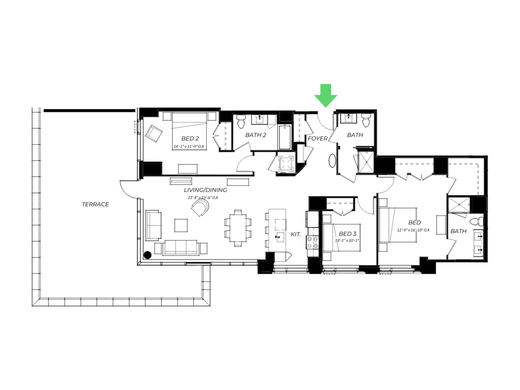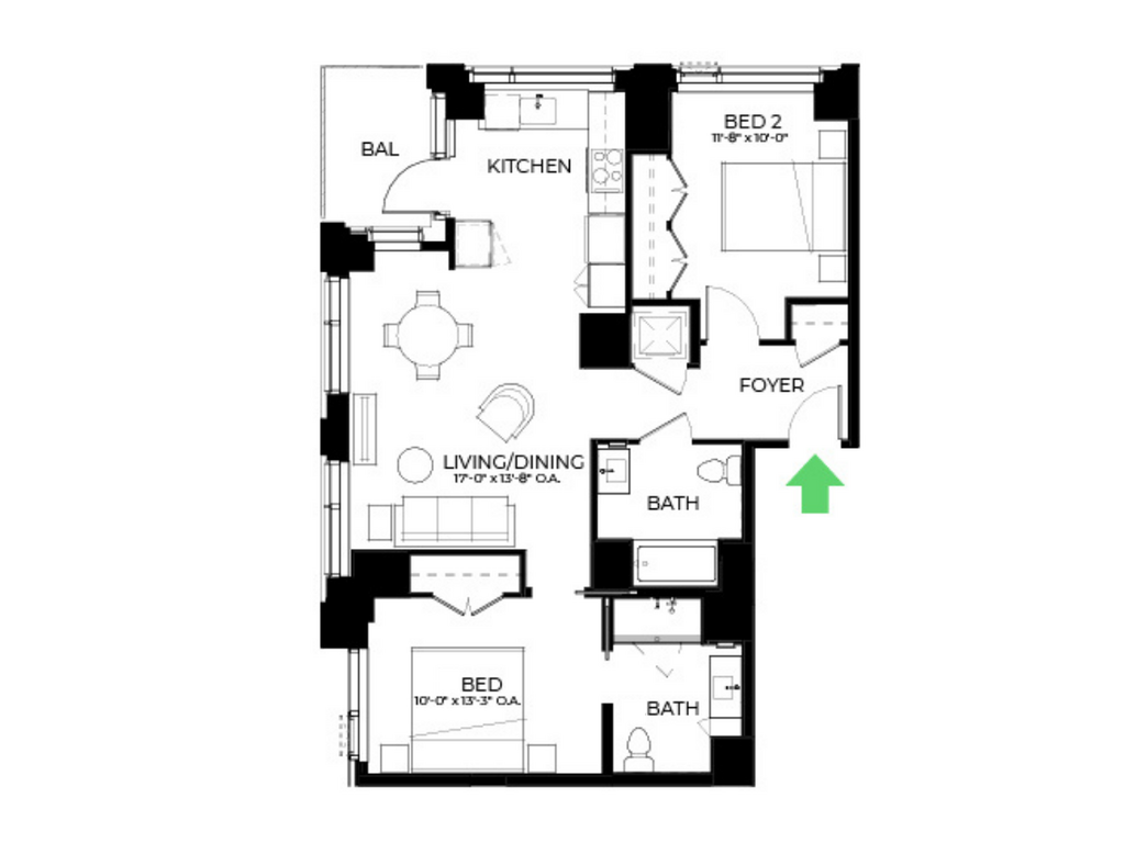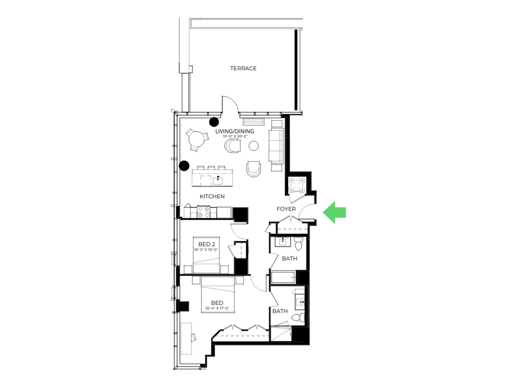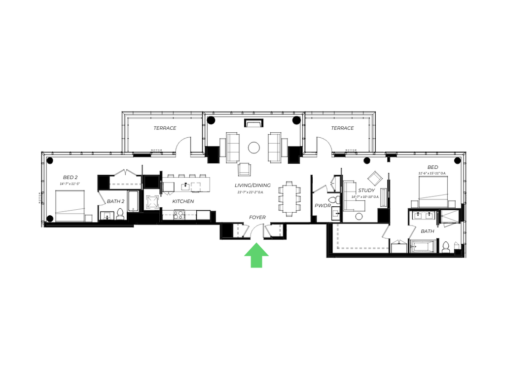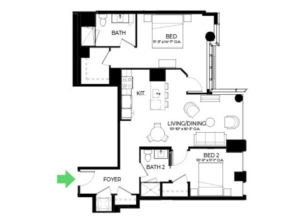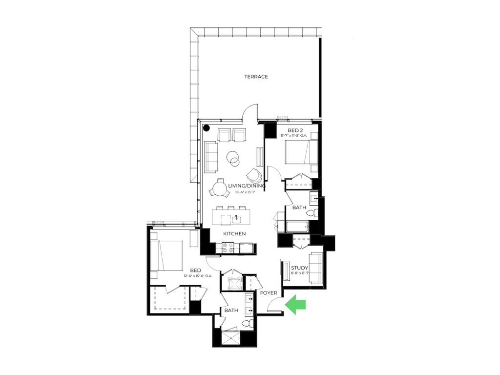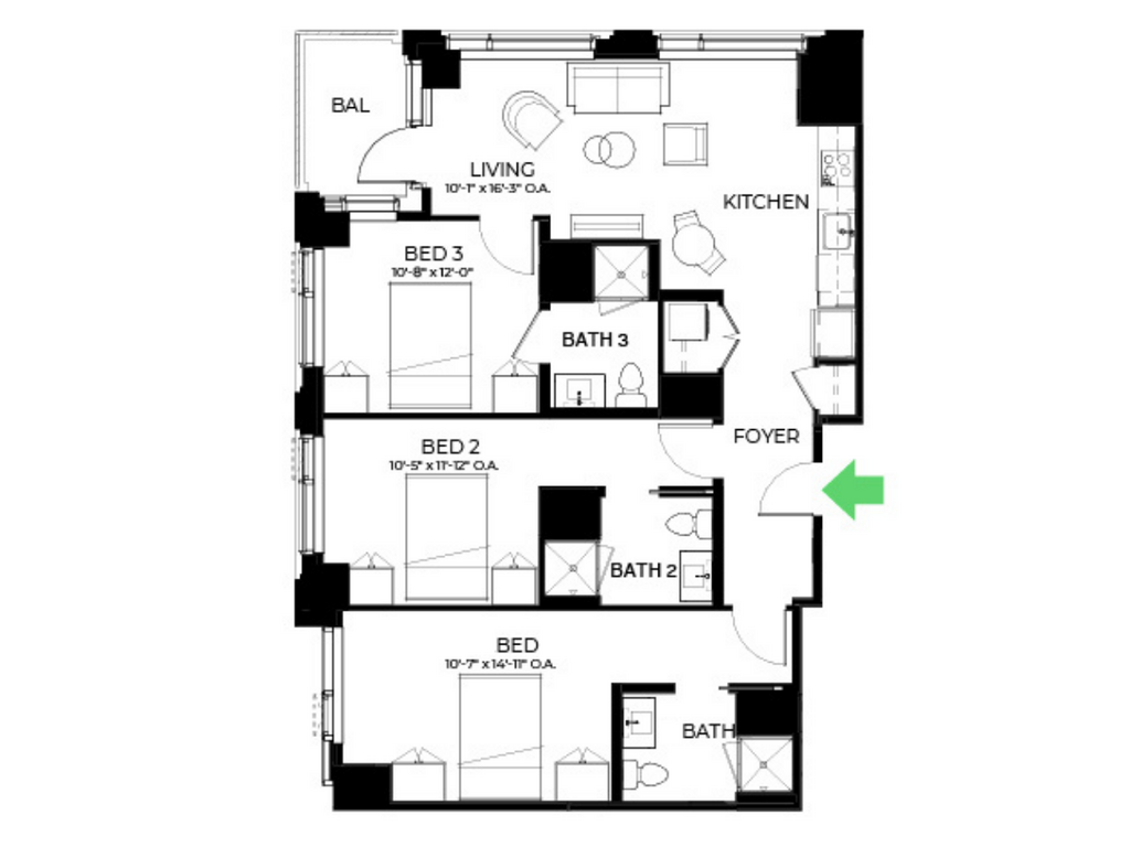 S28 | Studio | 1 Bath - Floorplan 1 S71 | Studio | 1 Bath