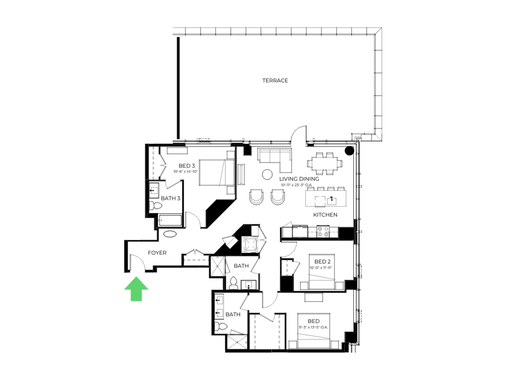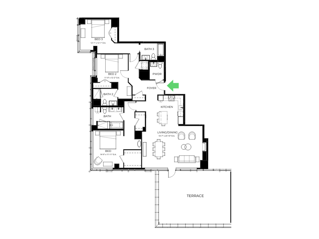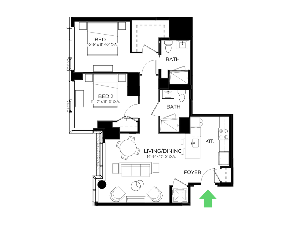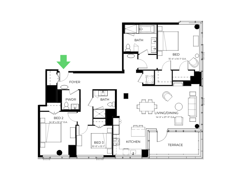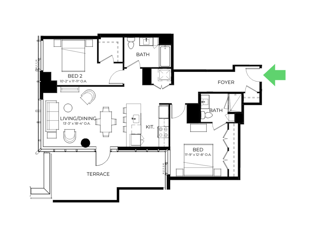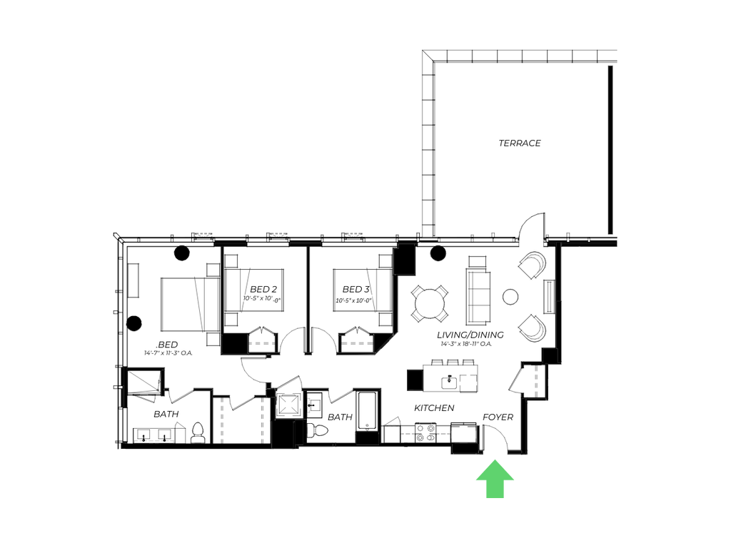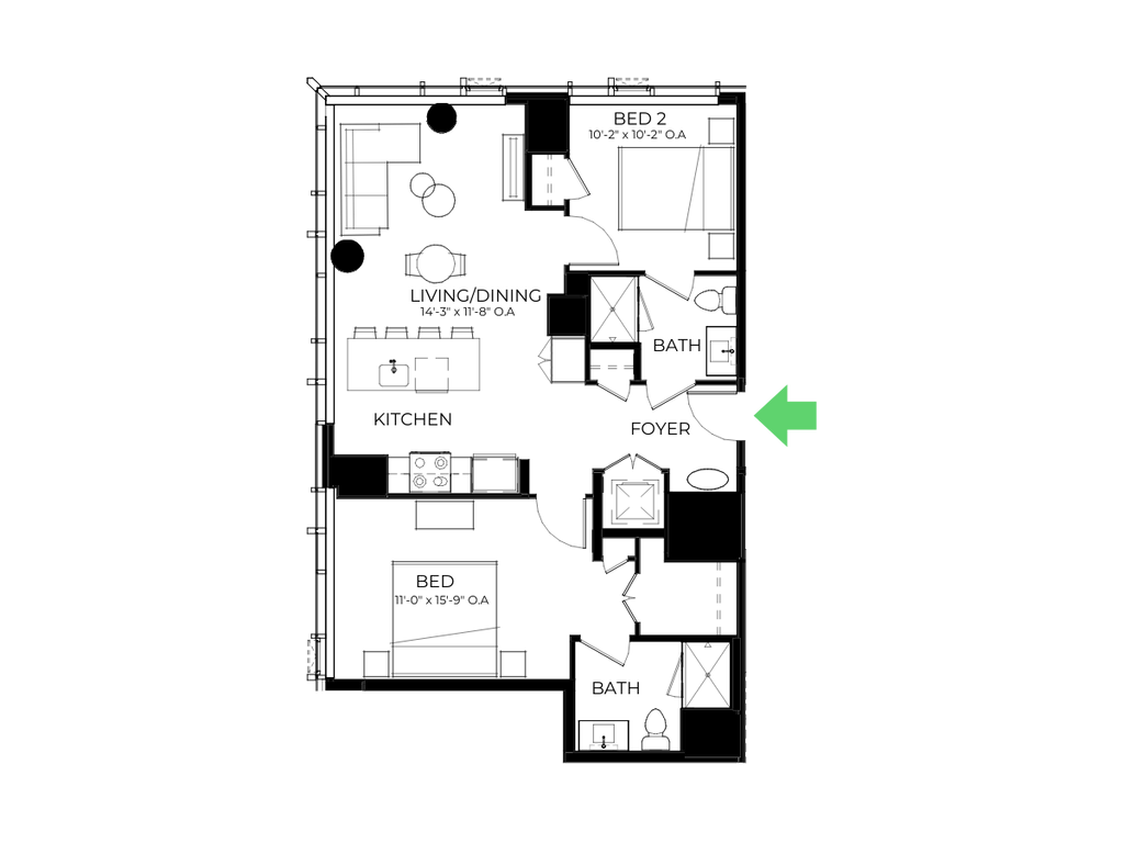 S28 | Studio | 1 Bath - Floorplan 1 S71 | Studio | 1 Bath