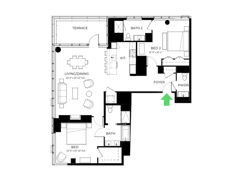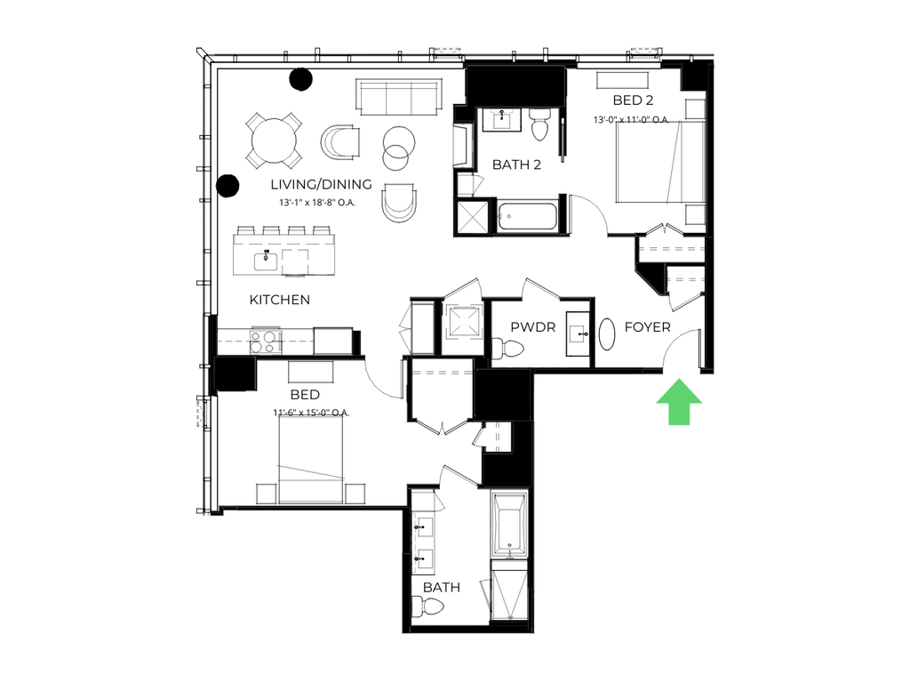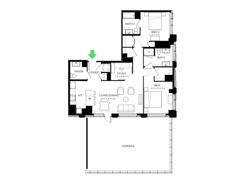 S13 | Studio | 1 Bath - Floorplan 1 S37 | Studio | 1 Bath