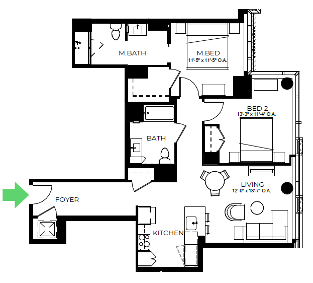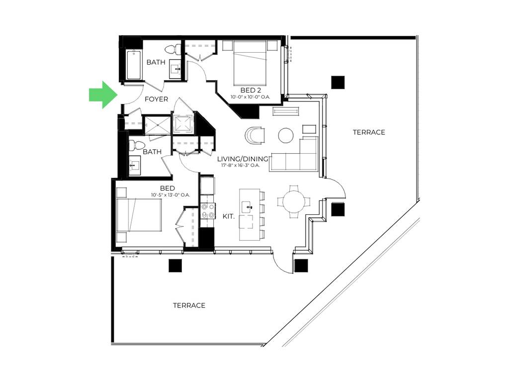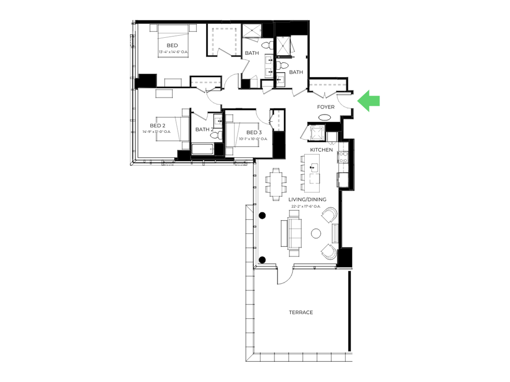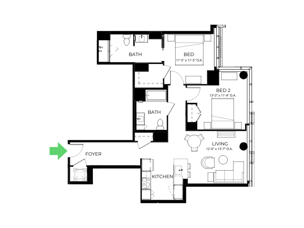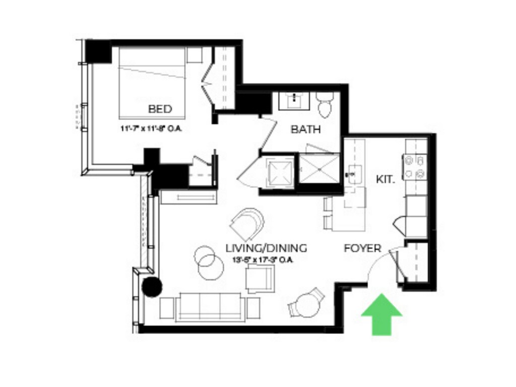 S71 | Studio | 1 Bath - Floorplan 1 S13 | Studio | 1 Bath